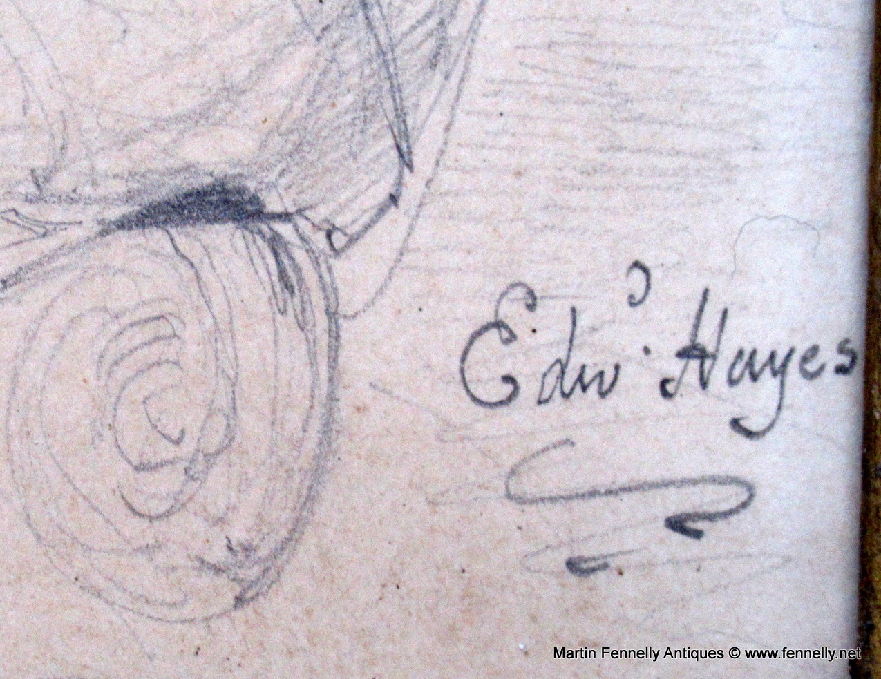 Charming Portrait of a Lady by Edward Hayes RHA (1797-1864).This Water Colour and Pencil work is typical of his work and I was delighted to locate it recently in County Meath. Tipperary born Edward Hayes was a watercolourist and portrait painter. He studied drawing at the Dublin Society school and under Jospeh Samuel Alpenny. He practiced as a miniature painter in Kilkenny, Waterford and Clonmel while also teaching. He moved to Dublin and practiced as a miniature painter and exhibited frequently with the RHA. Hayes was elected a member of the RHA in 1861. His portrait of his teacher JS Alpenny, done while he was stil young, is held in the National Gallery of Ireland. Condition is Good with the expected wear on a piEce so old. I decided not to do any restoration as I believe a lot of the charm with this piece of art is the lovely patina of the old Frame and the magical charm of the art work.