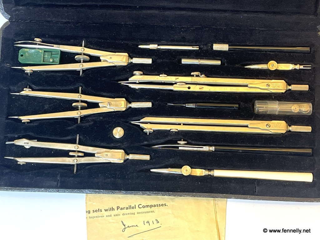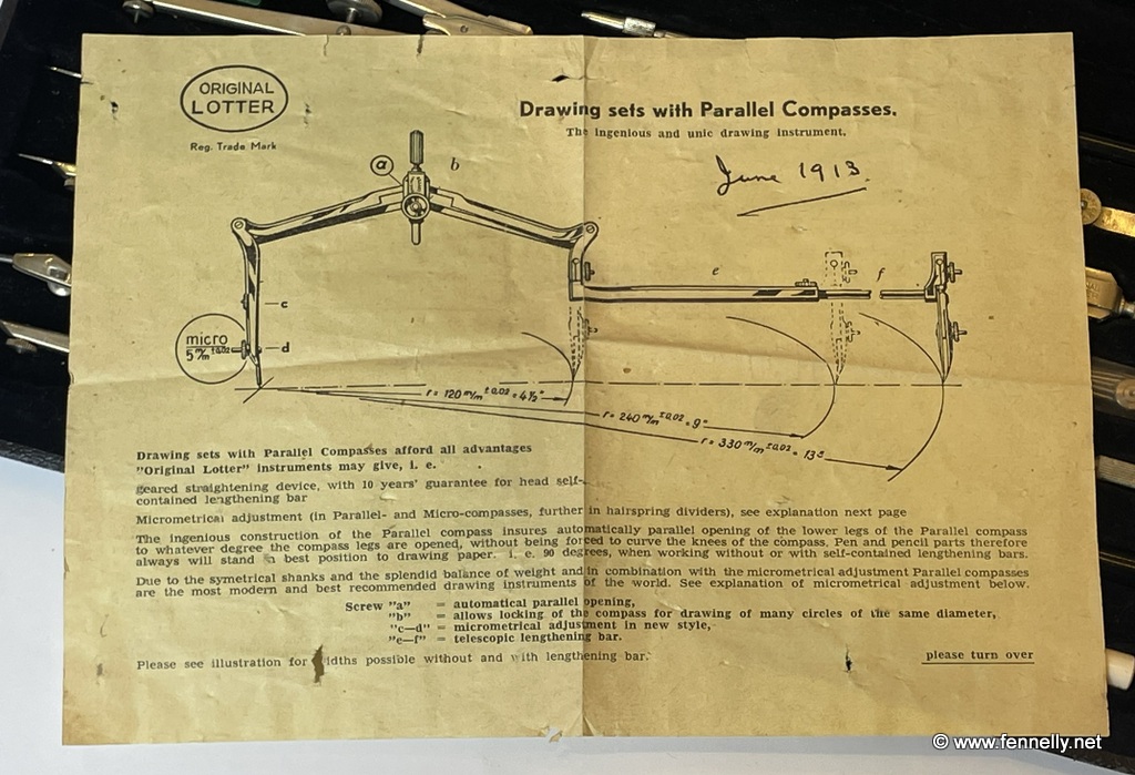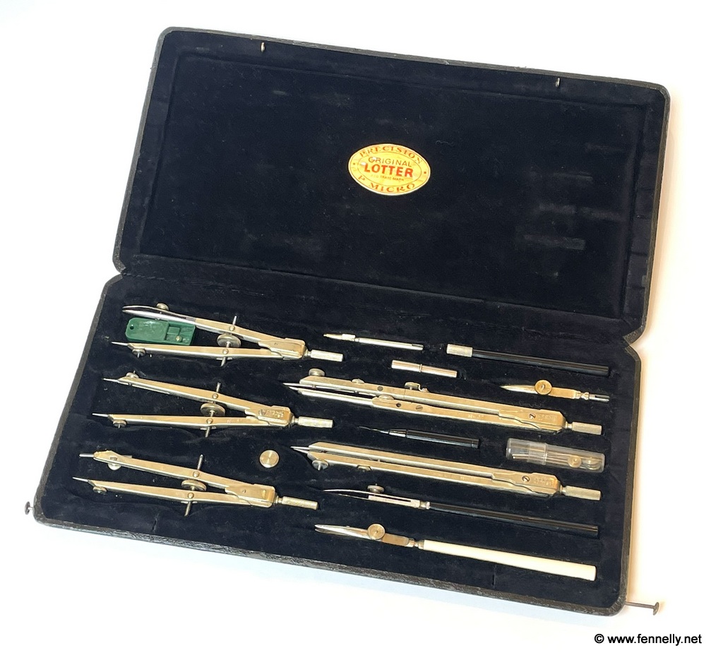 Superb and complete in original case – Lotter Precision Drawing Set Circa 1910. As borne out by the detailed pictures, only the best materials & craftsmen were involved in creating this Technical Drawing Set that withstood the test of time so exquisitely. Condition of this set is exquisite and totally complete with original paperwork. The quality of materials used, composition and craftsmanship of construction would make for the perfect gift for the engineer/architect in your life.