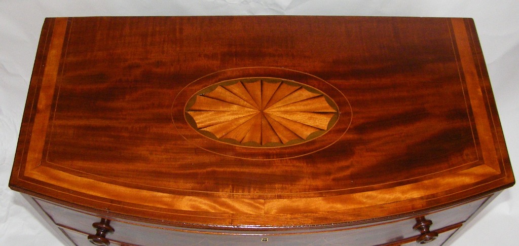 Stunning Antique English Georgian Mahogany Three Drawer Bow Front Chest of Drawers of medium proportions, circa 1800.