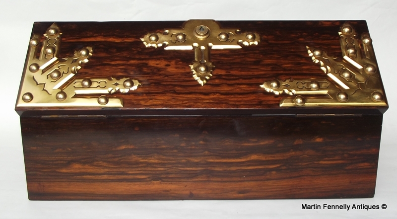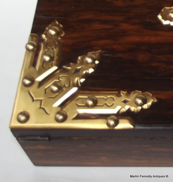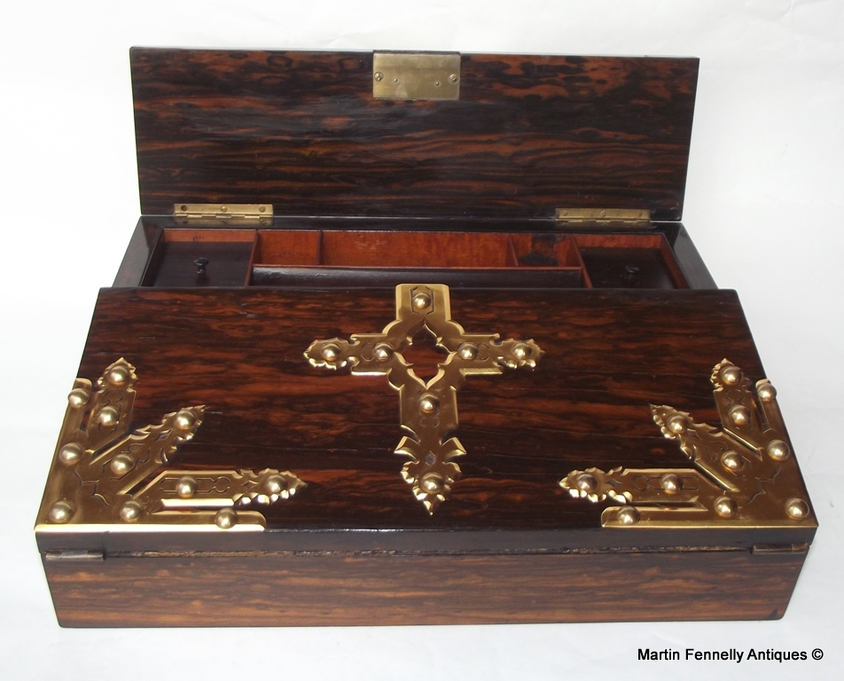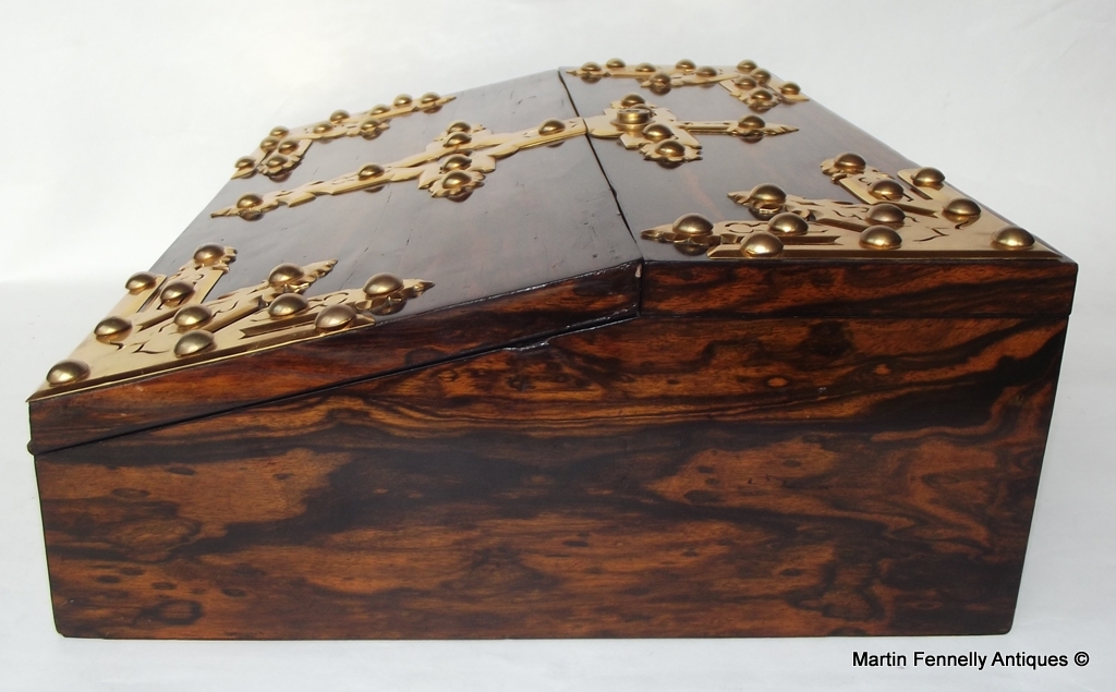 Fine Quality Well Figured Coromandel Writing Slope with lavish Ormolu mounts with extensive pierced cut decoration, complete with original fitted interior, mid Nineteenth Century.