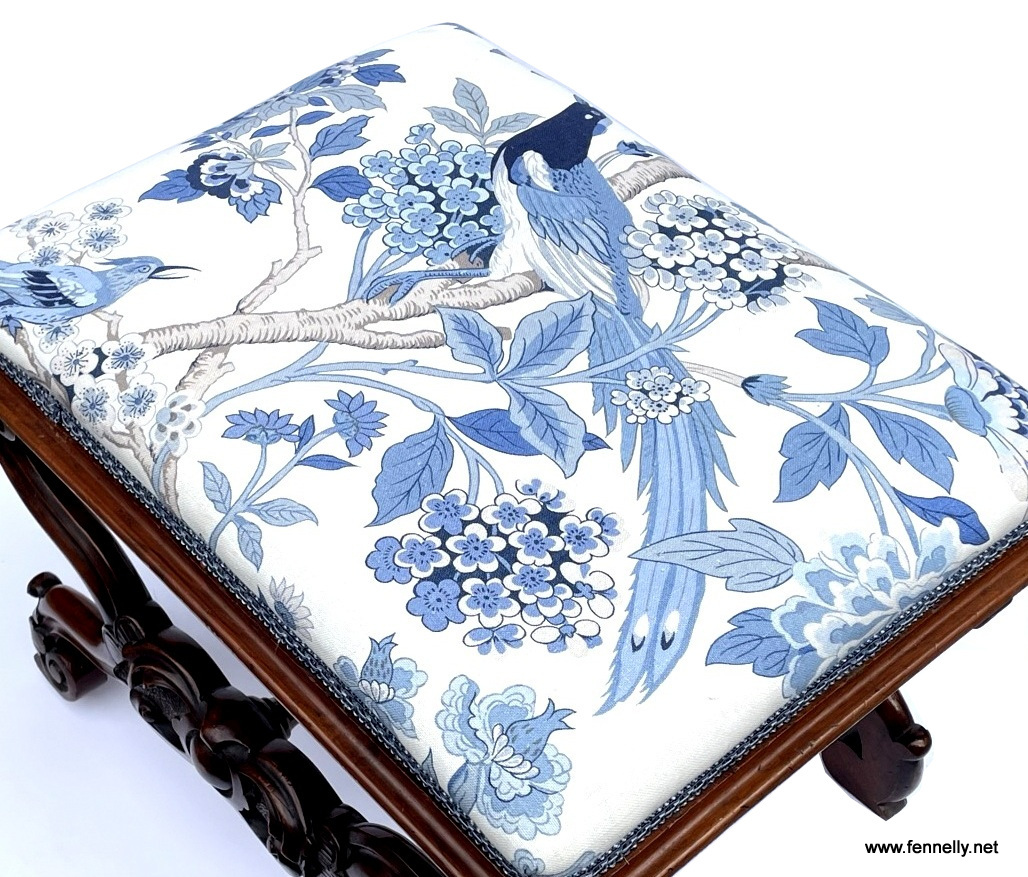 This Mahogany Stool dates to Circa 1950 and was made in England. The X Frame design is is strengthened by a turned stretcher uniting the frame and the stool was recently upholstered. The stool is in excellent condition and is a very adaptable piece in the home.
