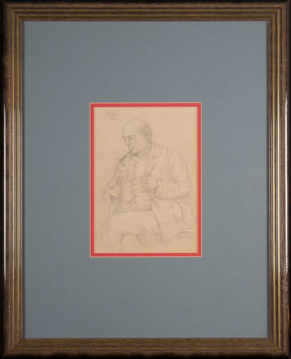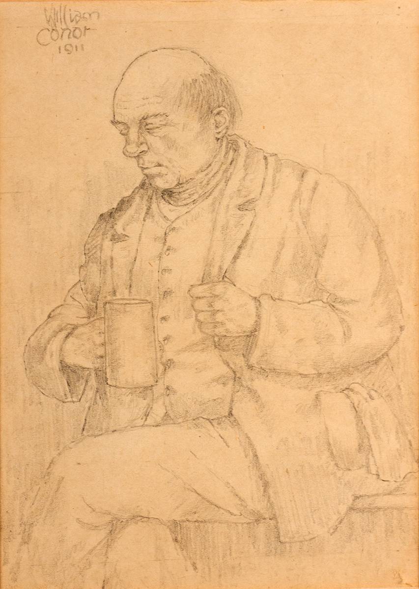 This is a charming Pencil Drawing of a Gentleman by the famed William Conor OBE RHA PPRUA ROI who was a Belfast-born artist. Celebrated for his warm and sympathetic portrayals of working-class life in Ulster, William Conor studied at the Government School of Design in Belfast in the 1890s. This lovely work has some crease marks and a very slight tear to the lower right but overall in good condition. Signed upper left and dated.