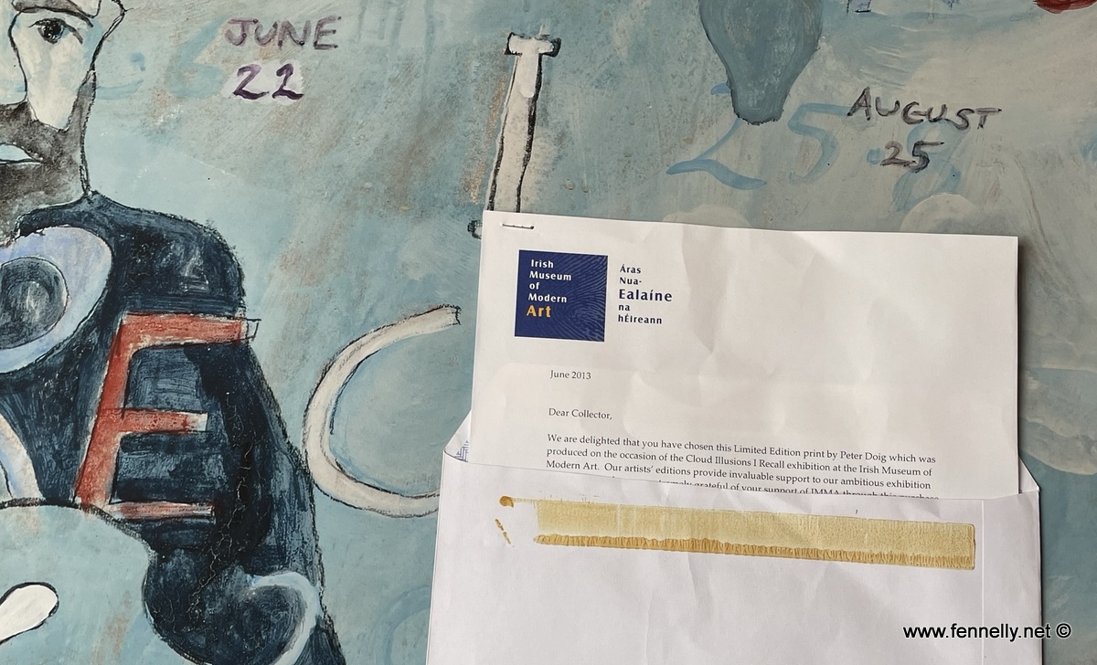 In 2013 Peter Doig created a work ‘Cloud Illusions I Recall’ for The Irish Museum of Modern Art (IMMA). This exclusive limited edition of 100 was sold by IMMA and this one is numbered 77, Signed with initials lower right and with original IMMA letter. It is of a large size, on archival Somerset Photo Rag 300gsm and in great condition. Peter Doig’s work is highly sought after and this limited edition print has appreciated dramatically in value since issue.