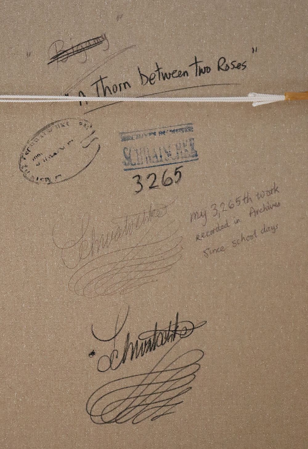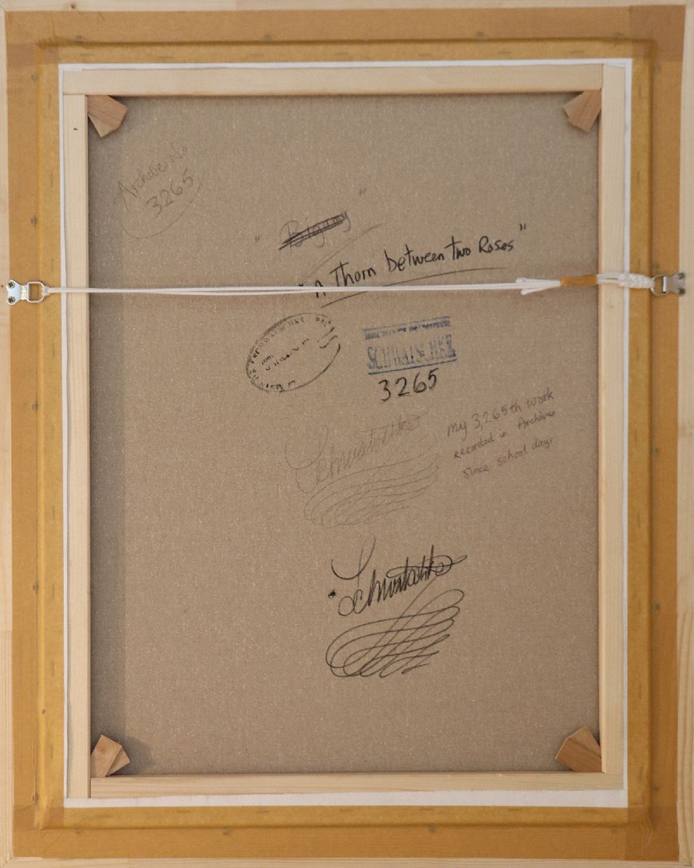 John Schwatschke (born Dublin 1943) is famed for his work with Classical Portraiture and Caricature. This Painting ‘A Thorn Between Two Roses’ is an excellent example of his caricature work and comes framed in the original gilt frame. This image will bring a smile to all that view with lots of subtle nuances going on. The Piece is signed on the verso and is fully stamped and catalogued through the La Musee Schwatschke.