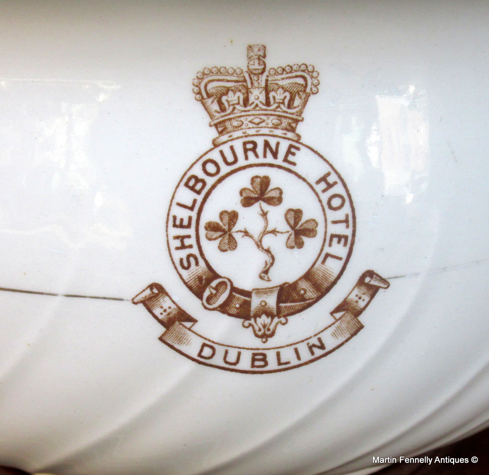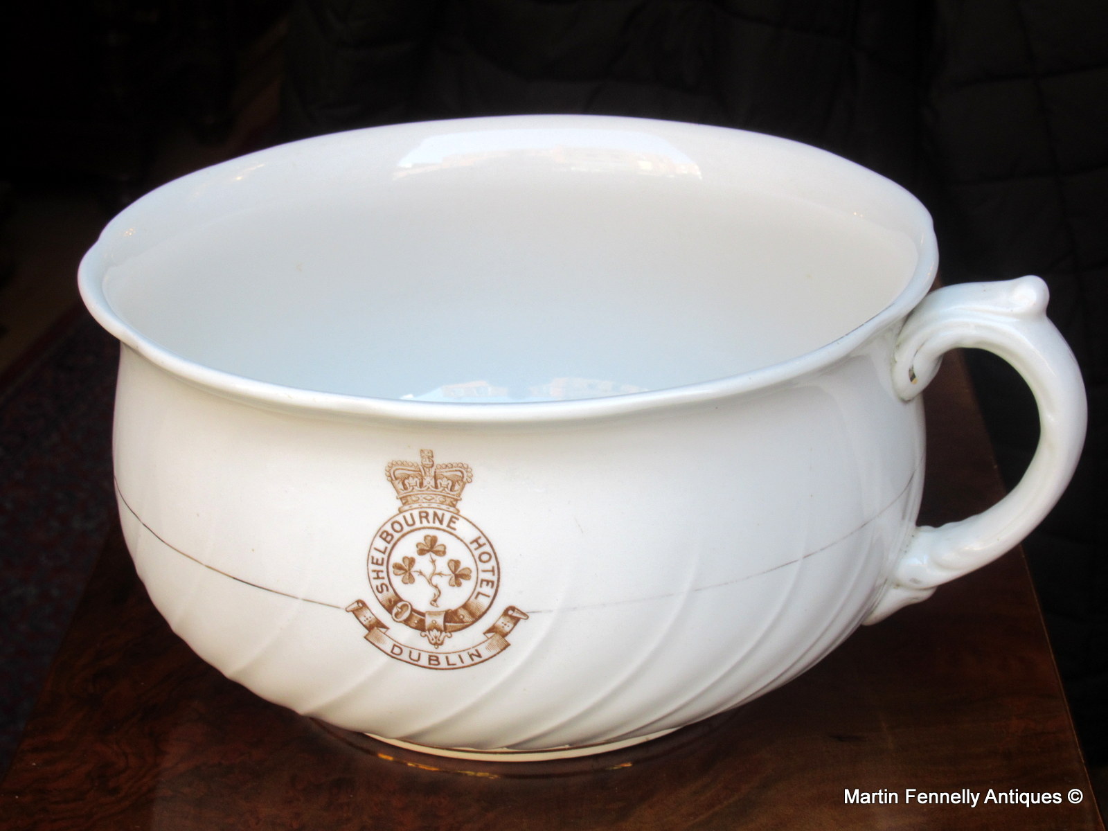 This is a very rare item and in excellent condition. This Chamber Pot by Furnivals of Staffordshire UK was made for The Shelbourne Hotel on Stephens Green Dublin Circa 1920 and is a very rare item. It carries the Shelbourne motif and I have only seen one before and that is in The Shelbourne Hotel’s own museum.