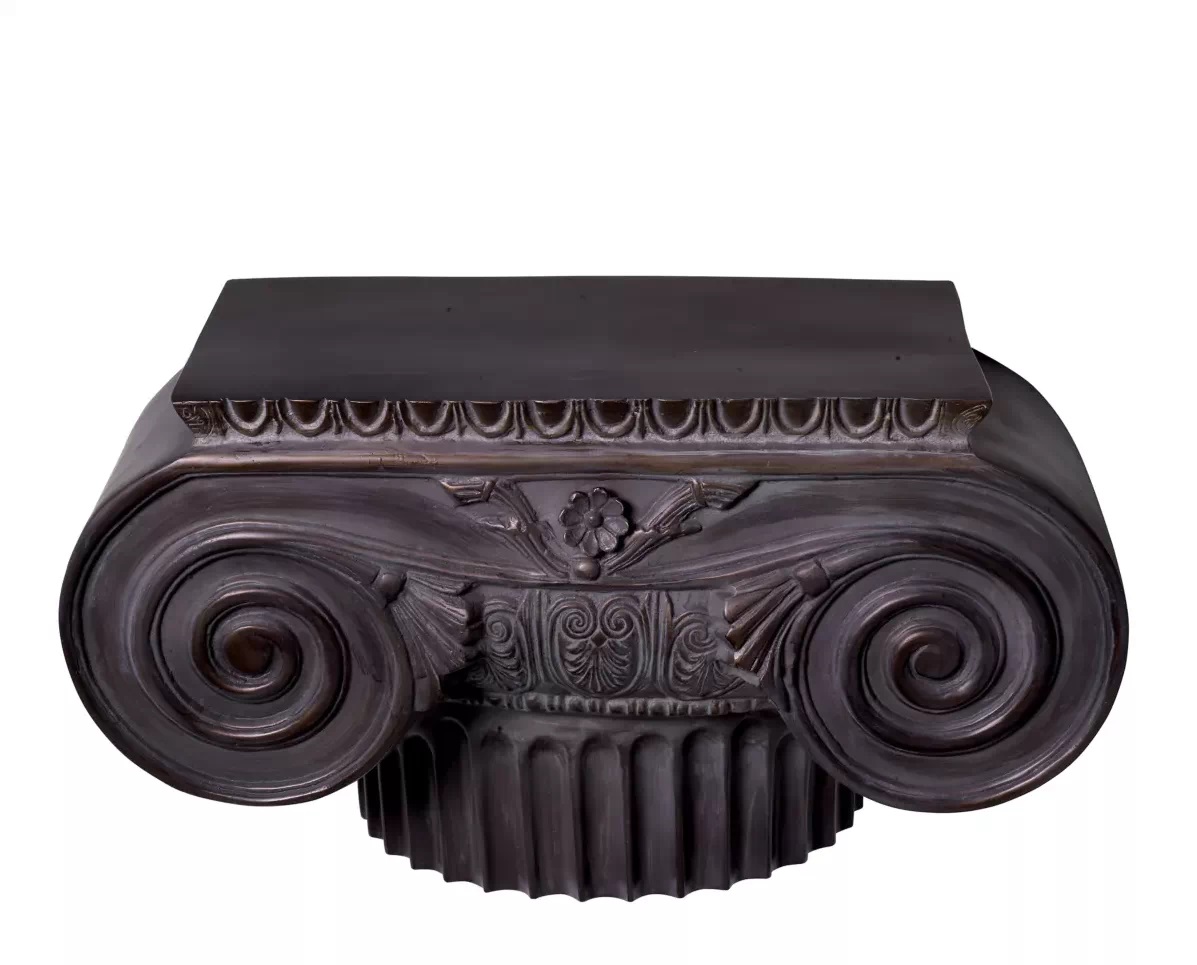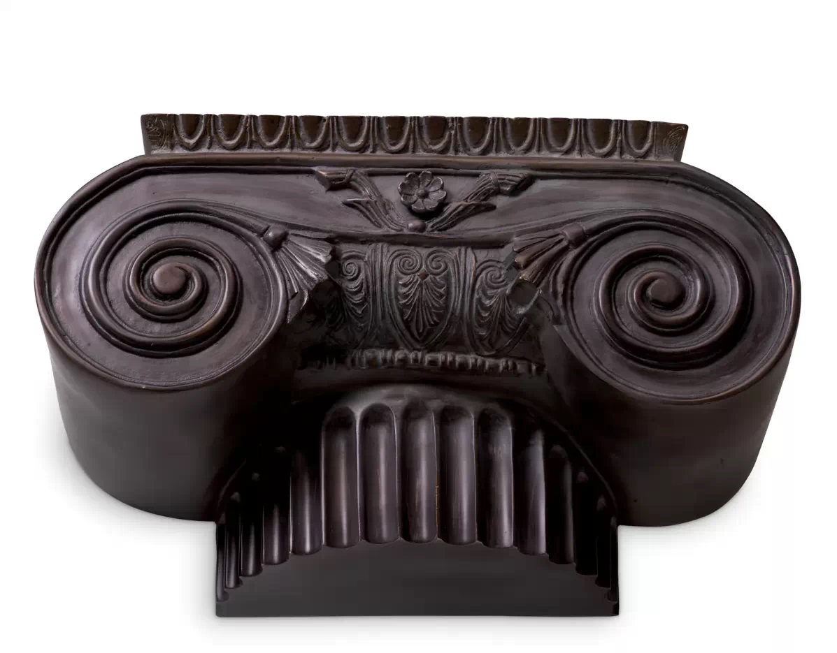 Superb Pair of Decorative of "Artemis Capital" which capture the essence of the iconic Ionic columns from the Temple of Artemis at Sardis. Crafted from cast metal with a rich bronze finish. Inspired by the grandeur of the original columns that once soared over fifty-eight feet high, it showcases delicate foliate carving on the capital and an intricate torus base with a vegetal scale-like pattern. This capital, a slightly smaller rendition, echoes the masterful craftsmanship of its ancient counterpart. A testament to timeless architectural elegance. Eichholtz Designed.
