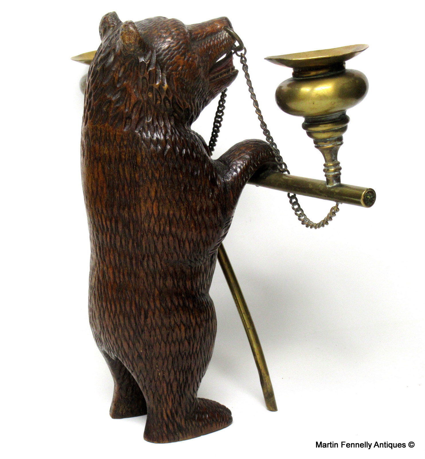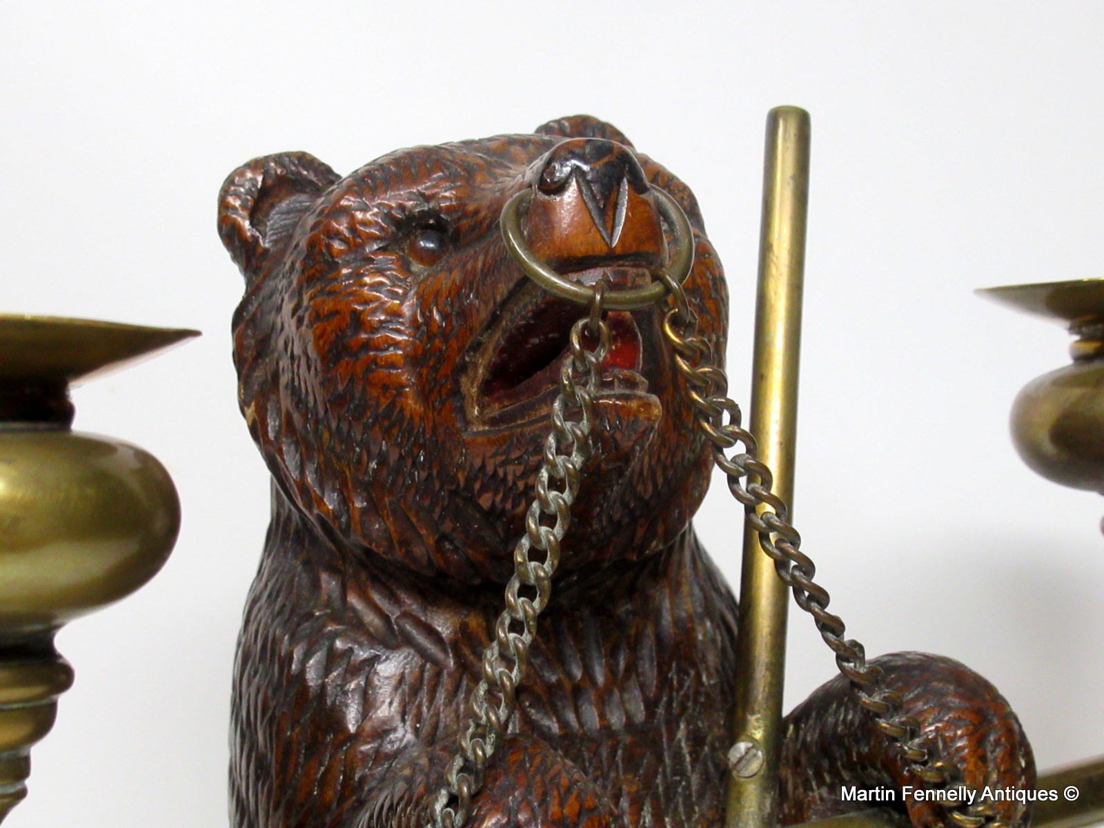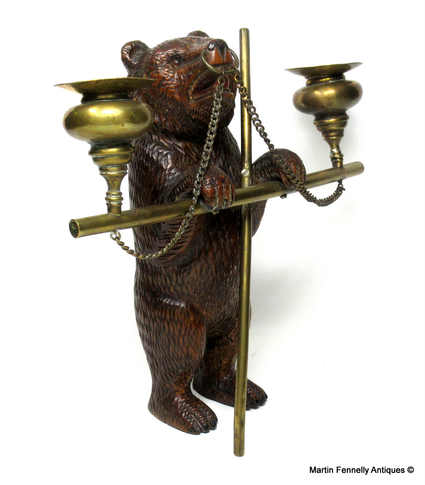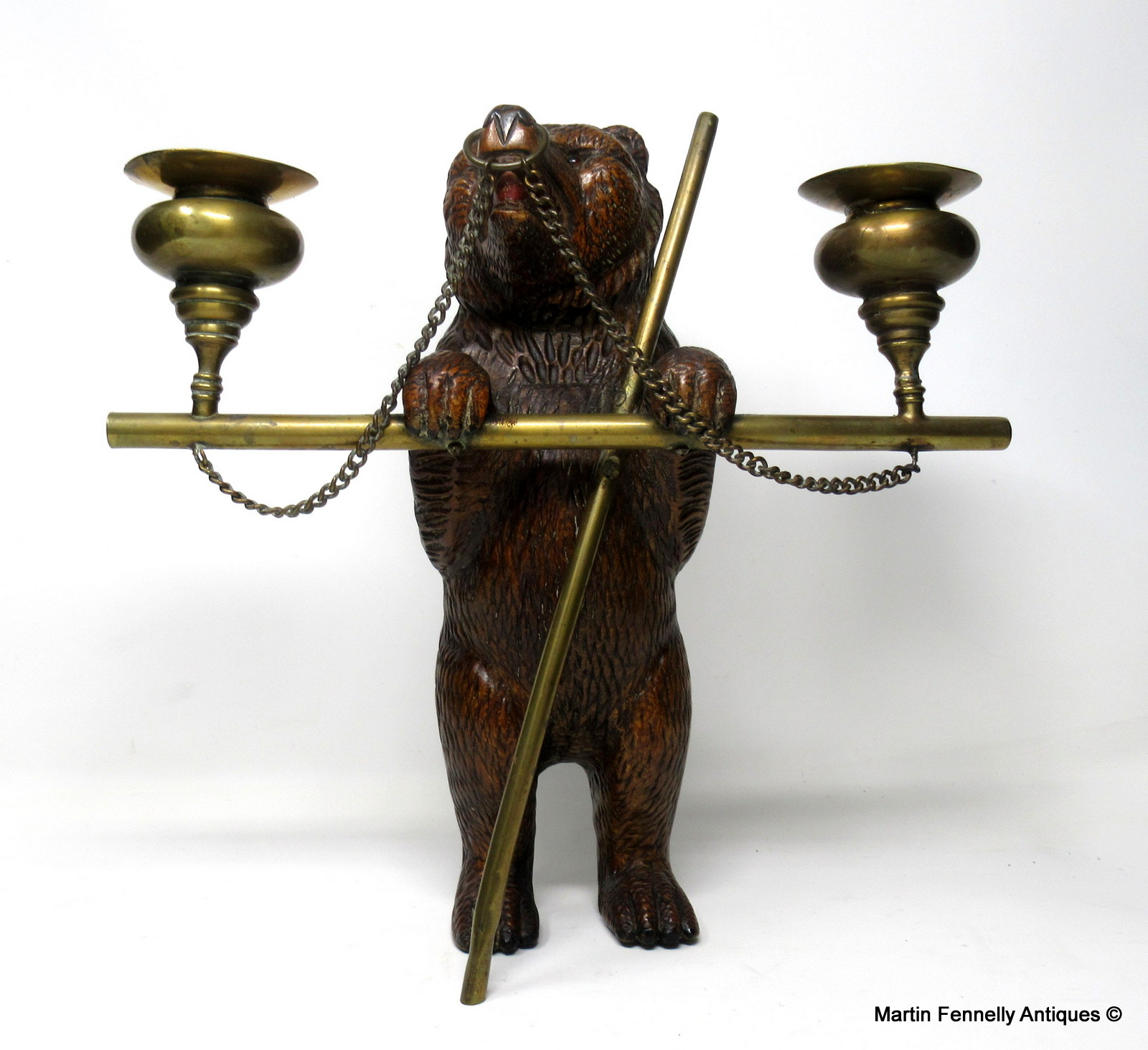 This is a wonderful carved Black Forest Bear Small Candelabra. It dates to Circa 1900 and is in excellent Condition. We know from the colour, carving and finish that this was carved in Brienz, Switzerland. Black Forest Bears are always popular and very collectable and this one in complete original condition will be sought after.
