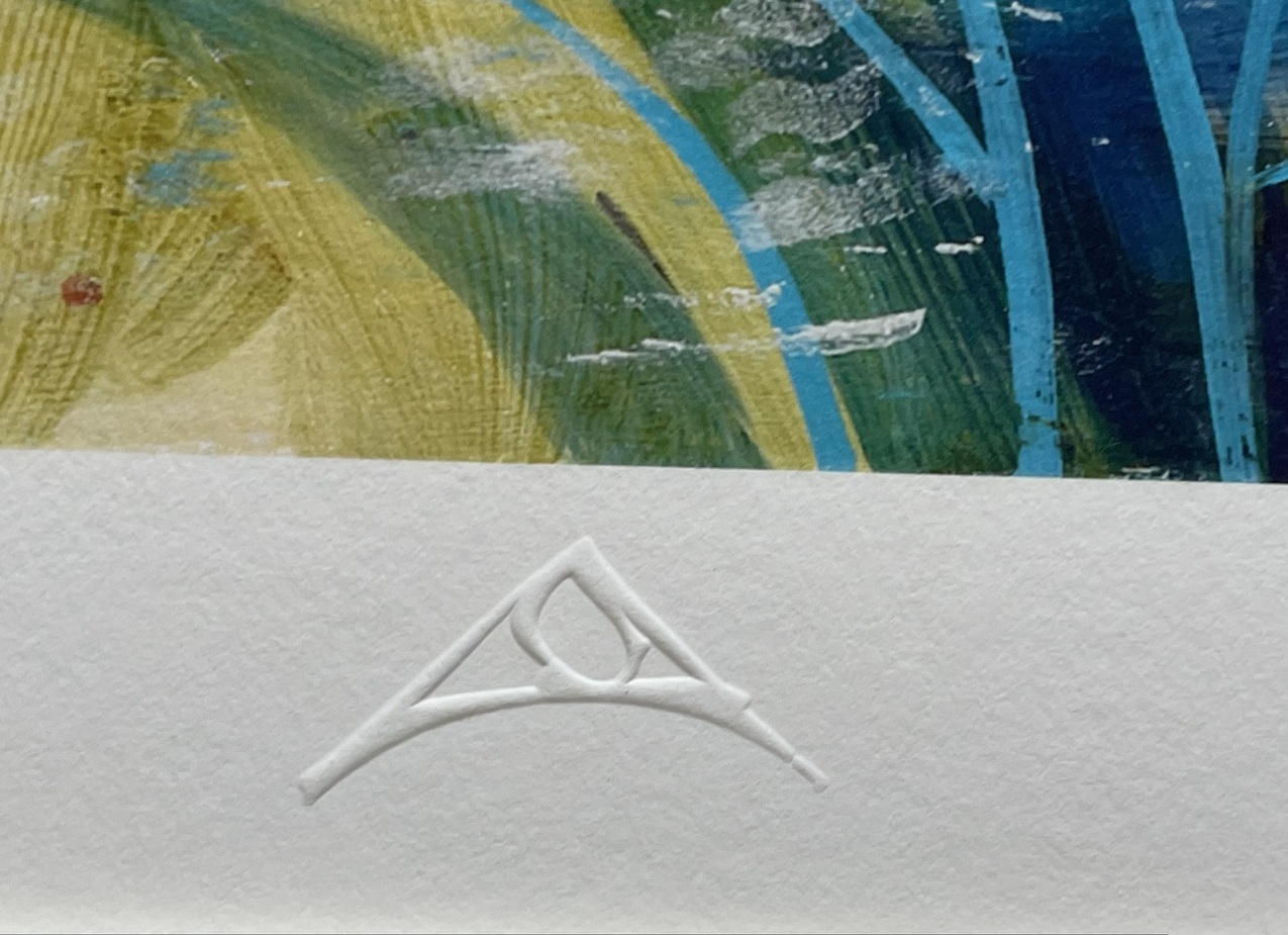 This is a signed Giclee print on 315gsm cotton rag paper – of Becky Blair’s Peach Tree Painting. The edition in 2013 was limited to 75. This one is numbered 22. Becky Blair born in 1972 and she creates work for galleries throughout the UK and Australia, and is commissioned by collectors worldwide. The Print is mounted and framing is available – Cost of framing depends on what frame client selects.