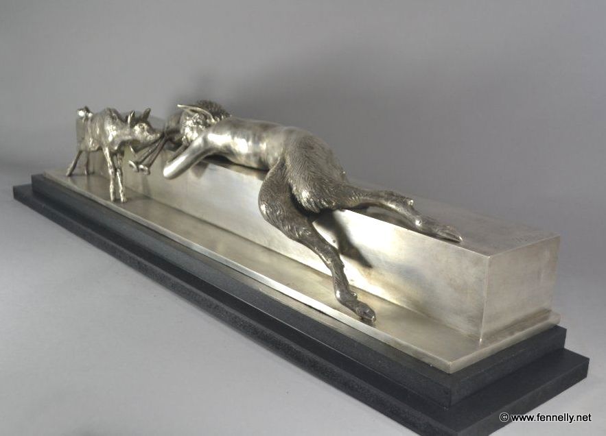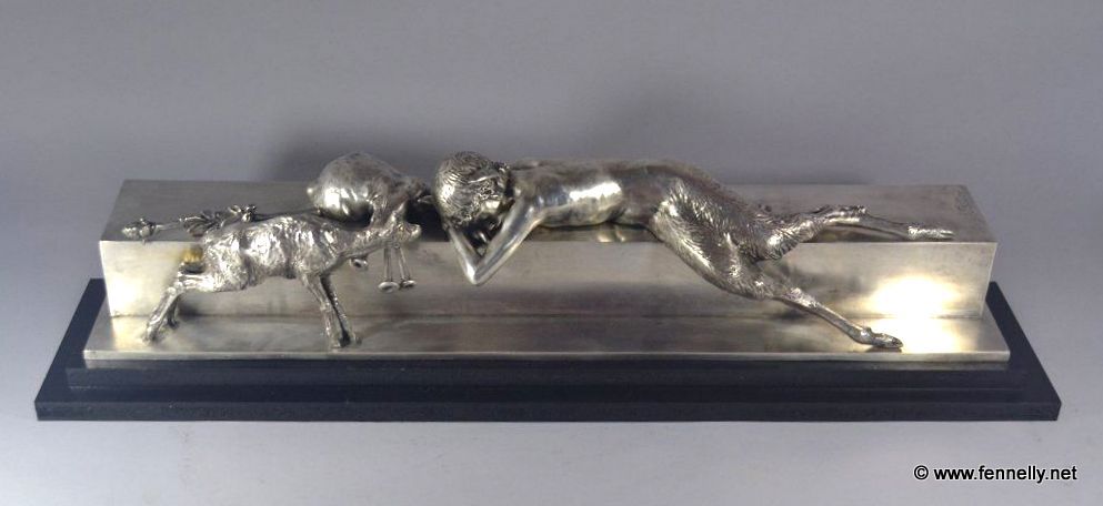 Silver Plated Bronze and incised ‘Ary Bitter’, on a more recent pupose made base. This is a truly magnificant Bronze, very rare and superbly cast. This bronze has resided in The South of France for many decades and will be soon in the front window of my gallery at 60 Francis Street where it will draw many admiring glances from all passing by. I was fortunate to locate it as there are not too many of these in the World.