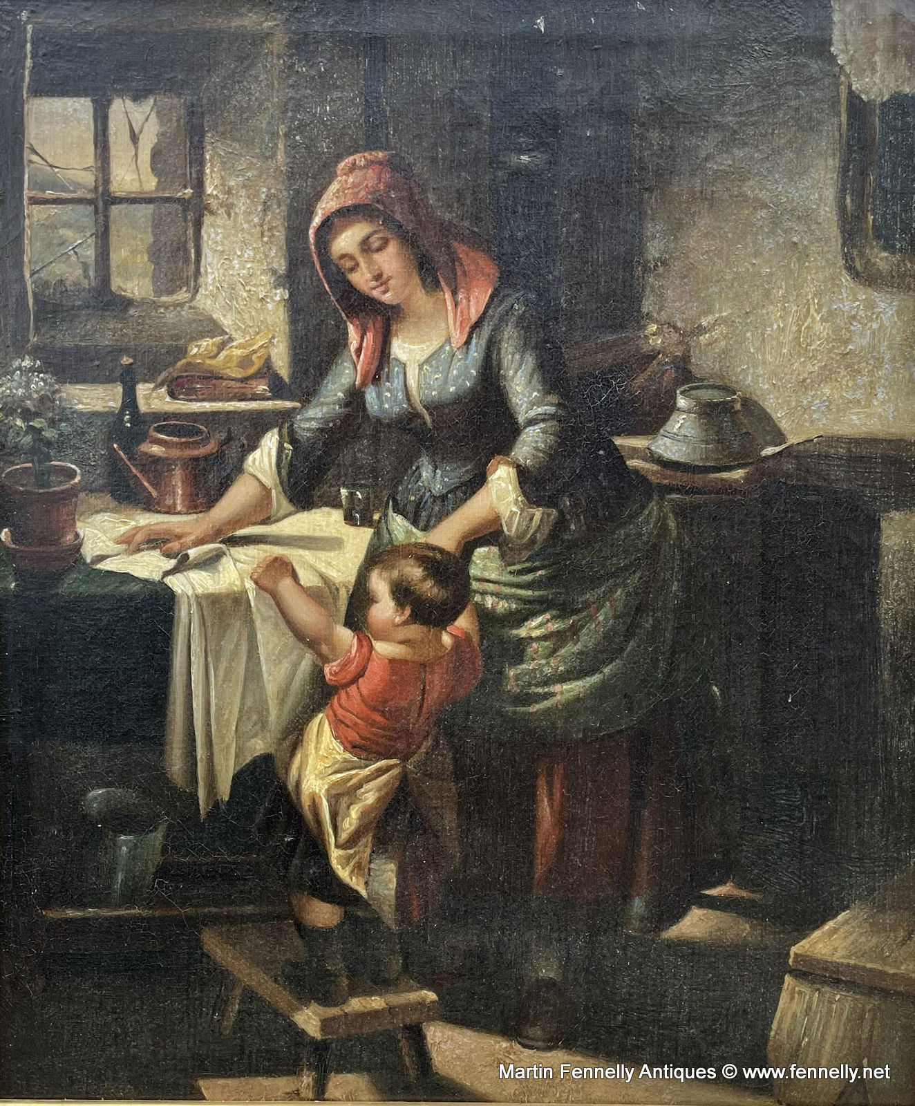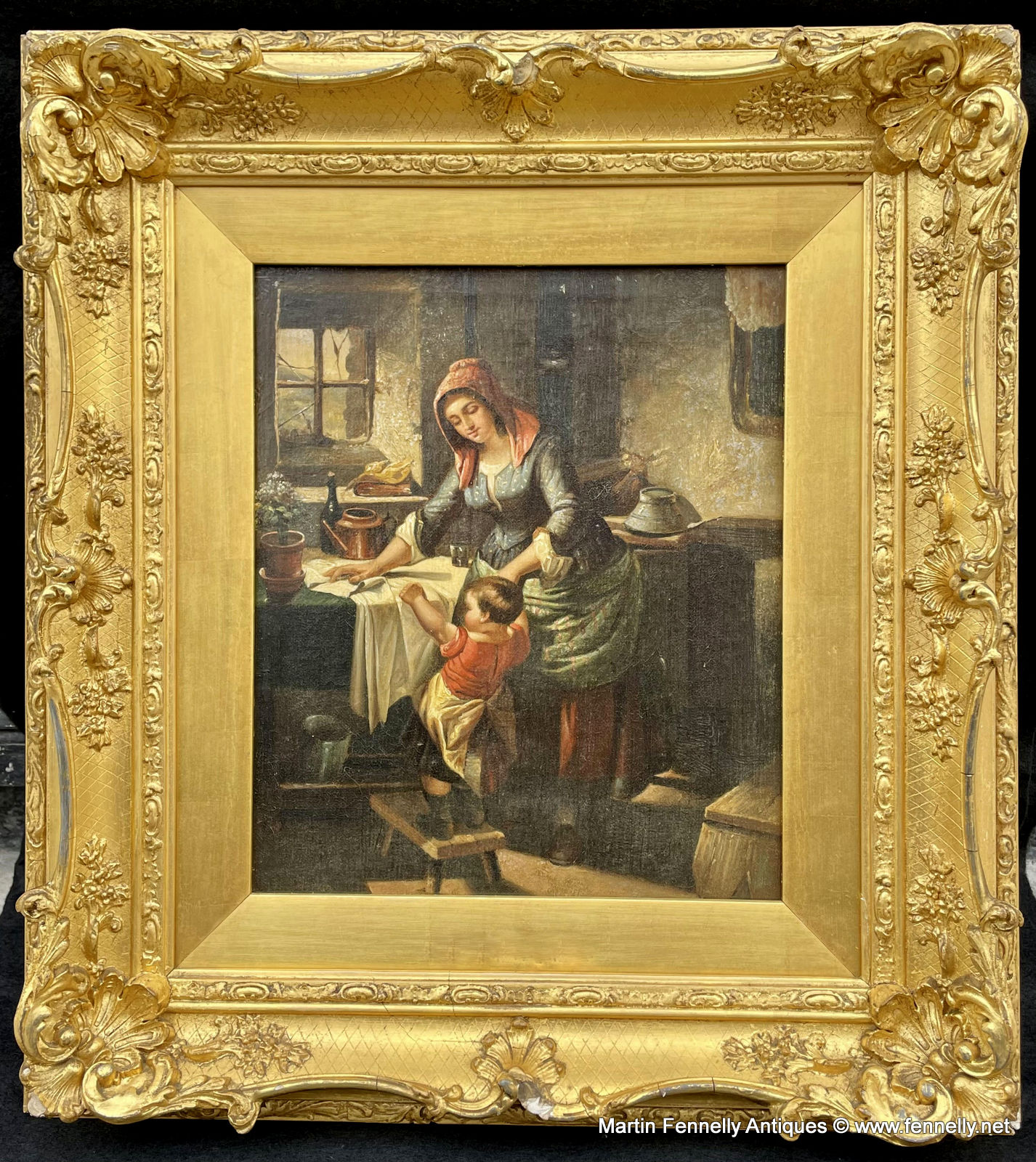 This is a wonderful Oil on Canvas by James C Waite (1832-1921) ‘Mother and Child’. It is framed in the original gilt frame. James Clarke Waite (1832-1920), artist, was born at Whitehaven, Cumberland, England, son of John Waite, schoolteacher, and his wife Isabella, née Clarke. He studied at the Government School of Design, Newcastle upon Tyne; the Scottish Institute, Edinburgh; the Royal Academy School, London; and for a year in Paris. He first exhibited at the Royal Academy in 1863. After becoming well known in the north of England as a genre painter, he settled in London in 1869-85, exhibiting over the period 25 works at the Royal Academy, and 117 at Sussex Street. He was elected a member of the Royal Society of British Artists in 1873.