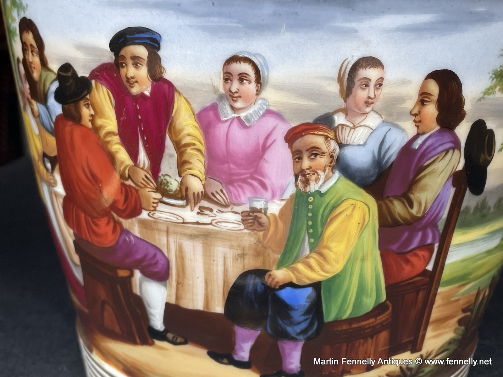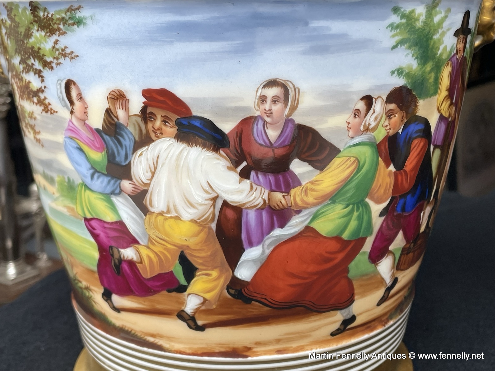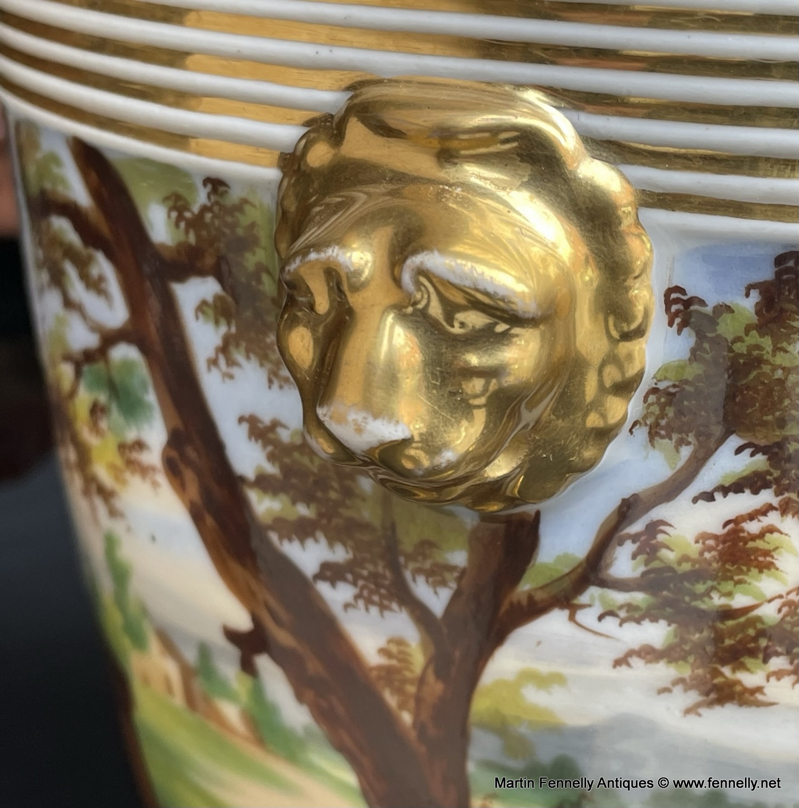 These are a wonderful Pair of French Louis-Philippe period Paris porcelain Cachepots (also know as Jardinieres) from the mid-19th century, with hand-painted rural scenes and gilt accents. The quality of the paint work is superb and in excellent condition. Adorned with gilt accents including animal faces, these French Louis-Philippe cachepots date to Circa 1840 and will bring a touch of French elegance to any room in your.