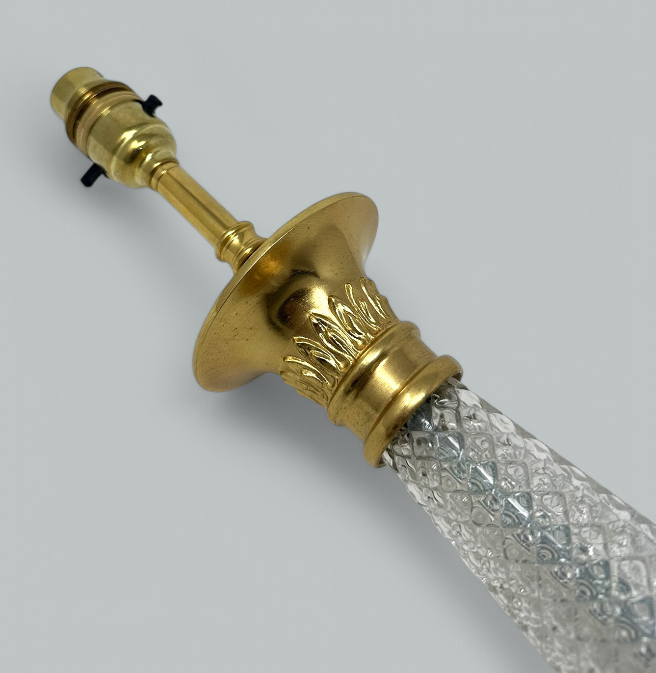 Fine Pair French Ormolu and hand cut full led Crystal Victorian Electric Table Lamps of elegant slender form and quite tall proportions, firmly attributed to French maker Baccarat Crystal.