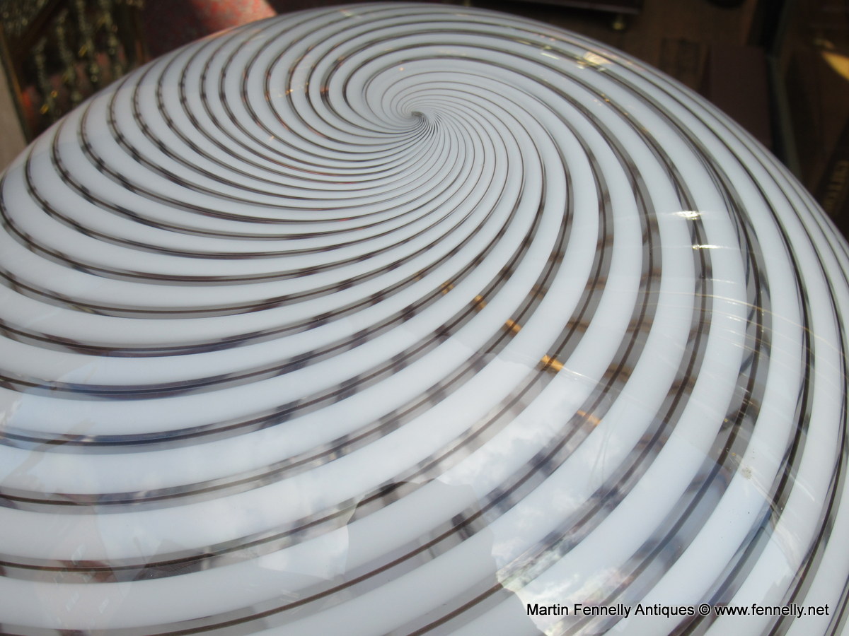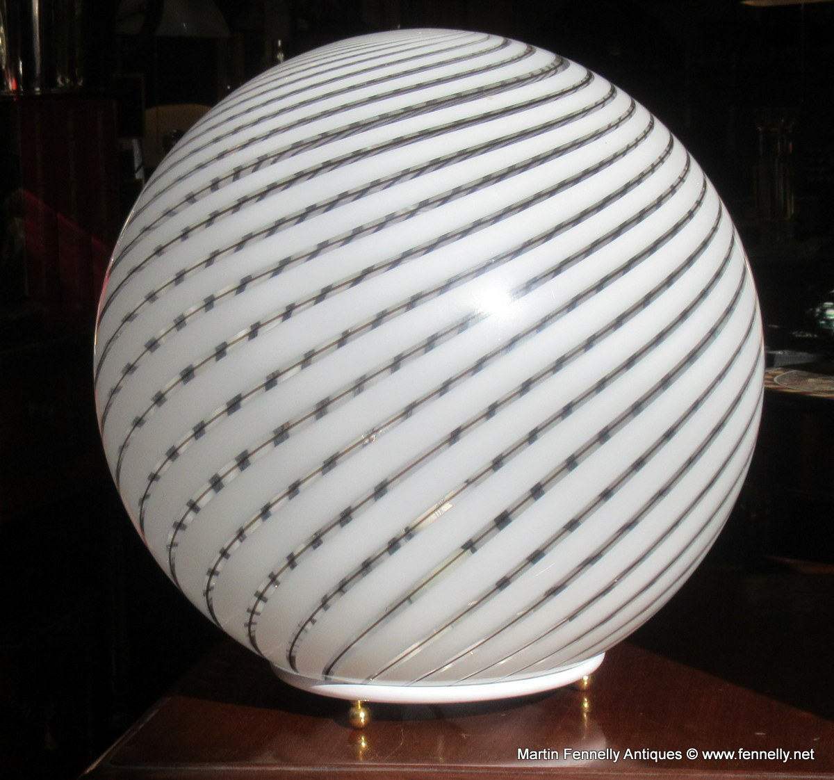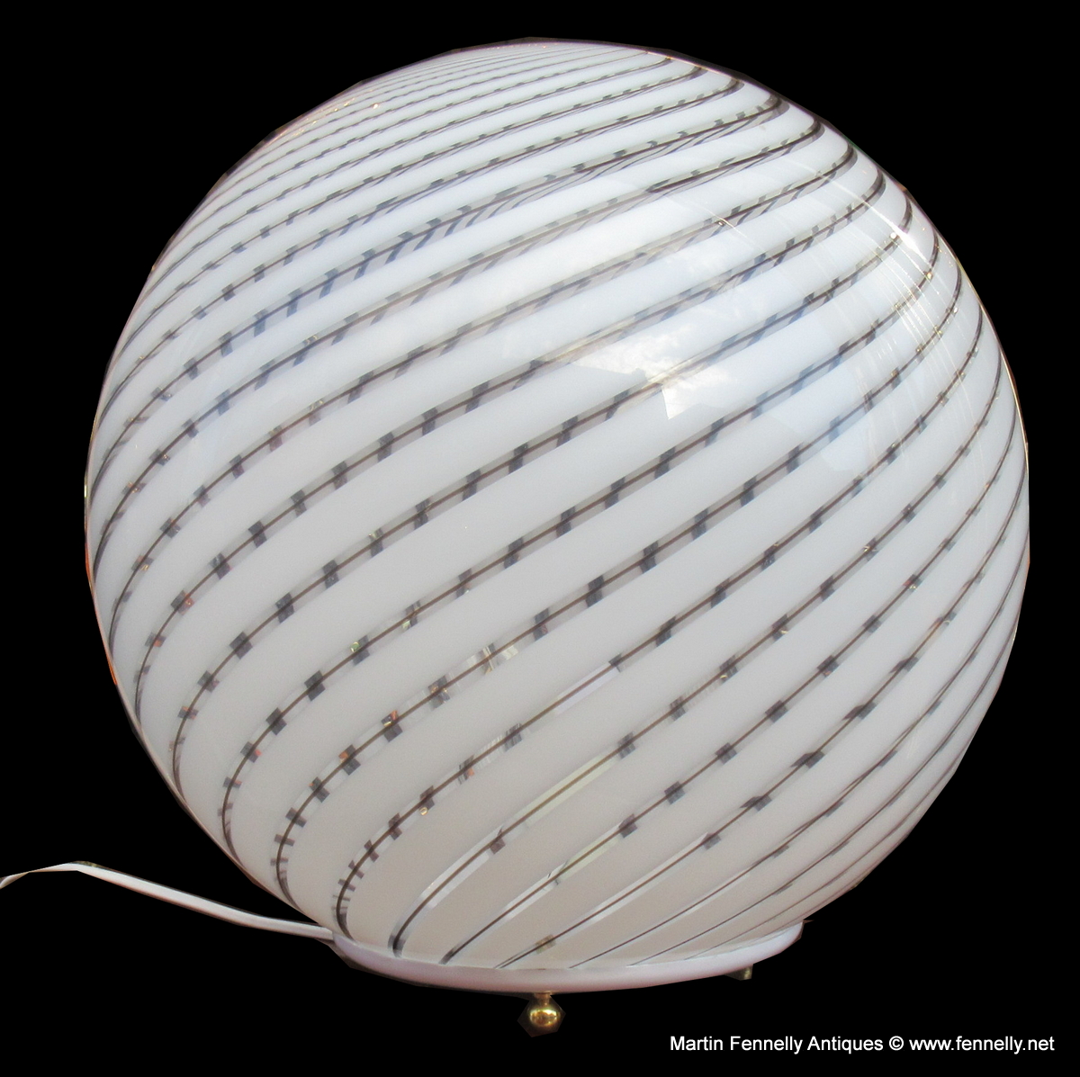These are a wonderful Pair of Italian Spiral Design 1960’s Globe Table Lamps. They are in excellent condition and draw many admiring glances from visitors to my gallery. Although they are not stamped I have had opinion on them from people within the Antique business and we believe that they are by Murano of Italy.