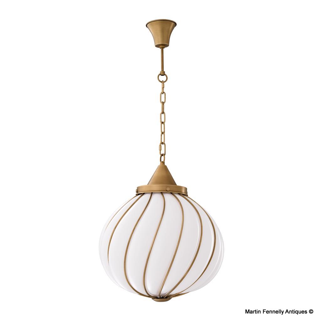 The Romano Lantern presented in Brass and White Glass, it comes ready for use with brass chain and ceiling cup. With a nod to the Art Nouveau period and fluid movement it will create a focal point in your hallway.