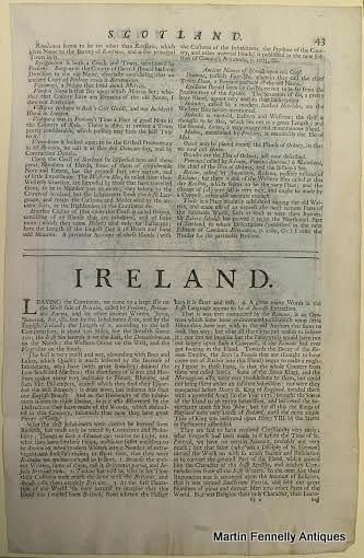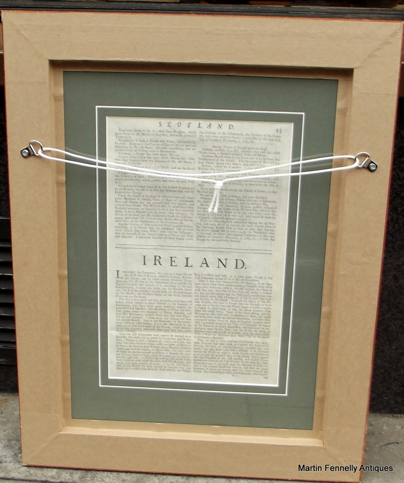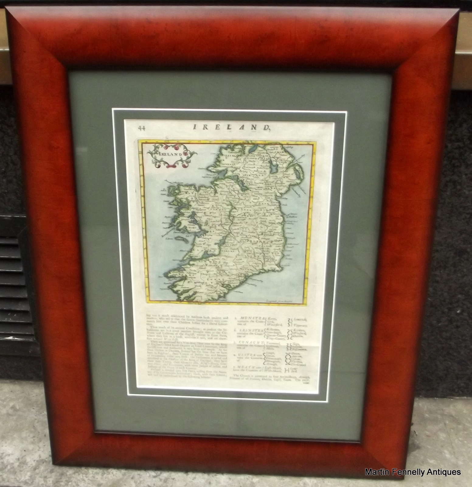 This is a very Rare and early Map of Ireland from1723. I found it in The UK and is taken from a Book of Maps and geograpgic detail by Herman Moll. I have framed it with the print visible from front and back. Herman Moll is a famous Cartographer from this time and I am delighted to have located this one. This Antique Map is in Good condition (bearing in mind age) and is Framed in a wonderful Maple Frame.