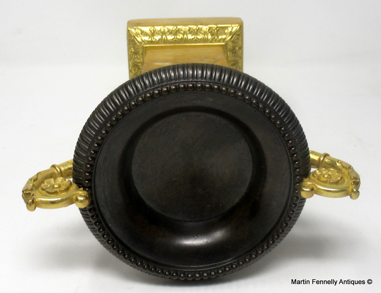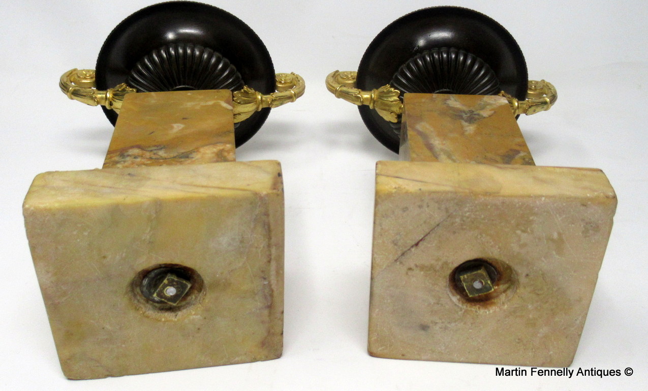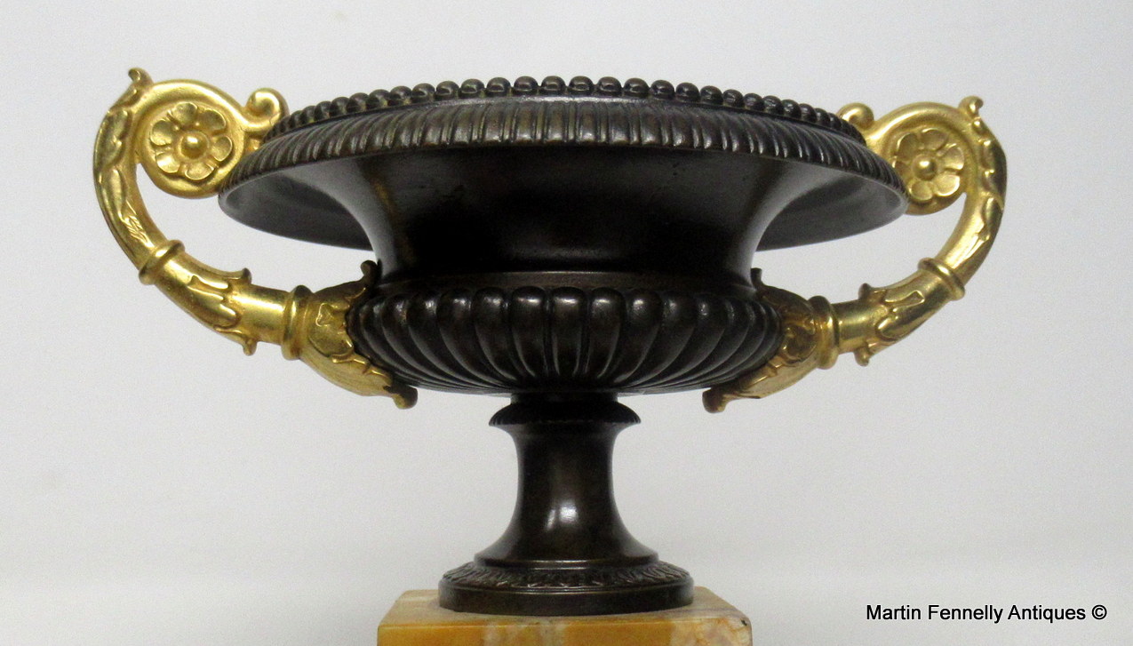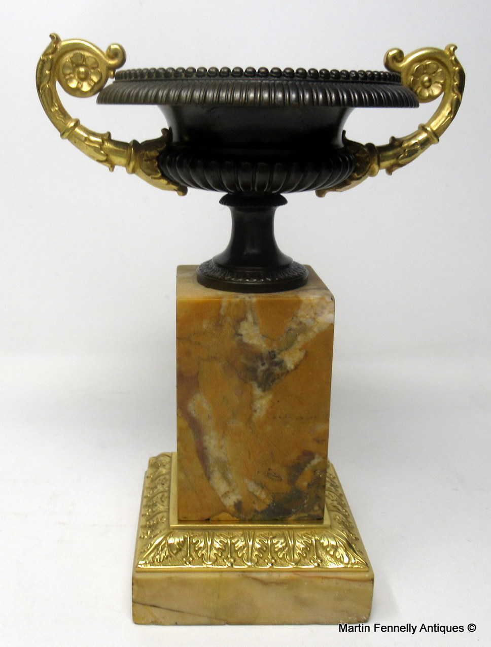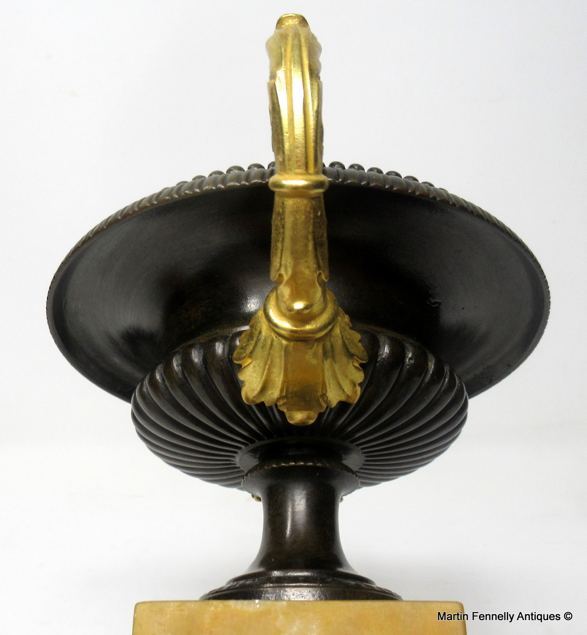 Fine Pair of French Bronze & Well Grained Sienna Marble Grand Tour Twin Handle Tazza of compact proportions. First quarter of the Nineteenth Century.