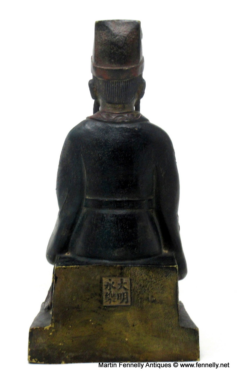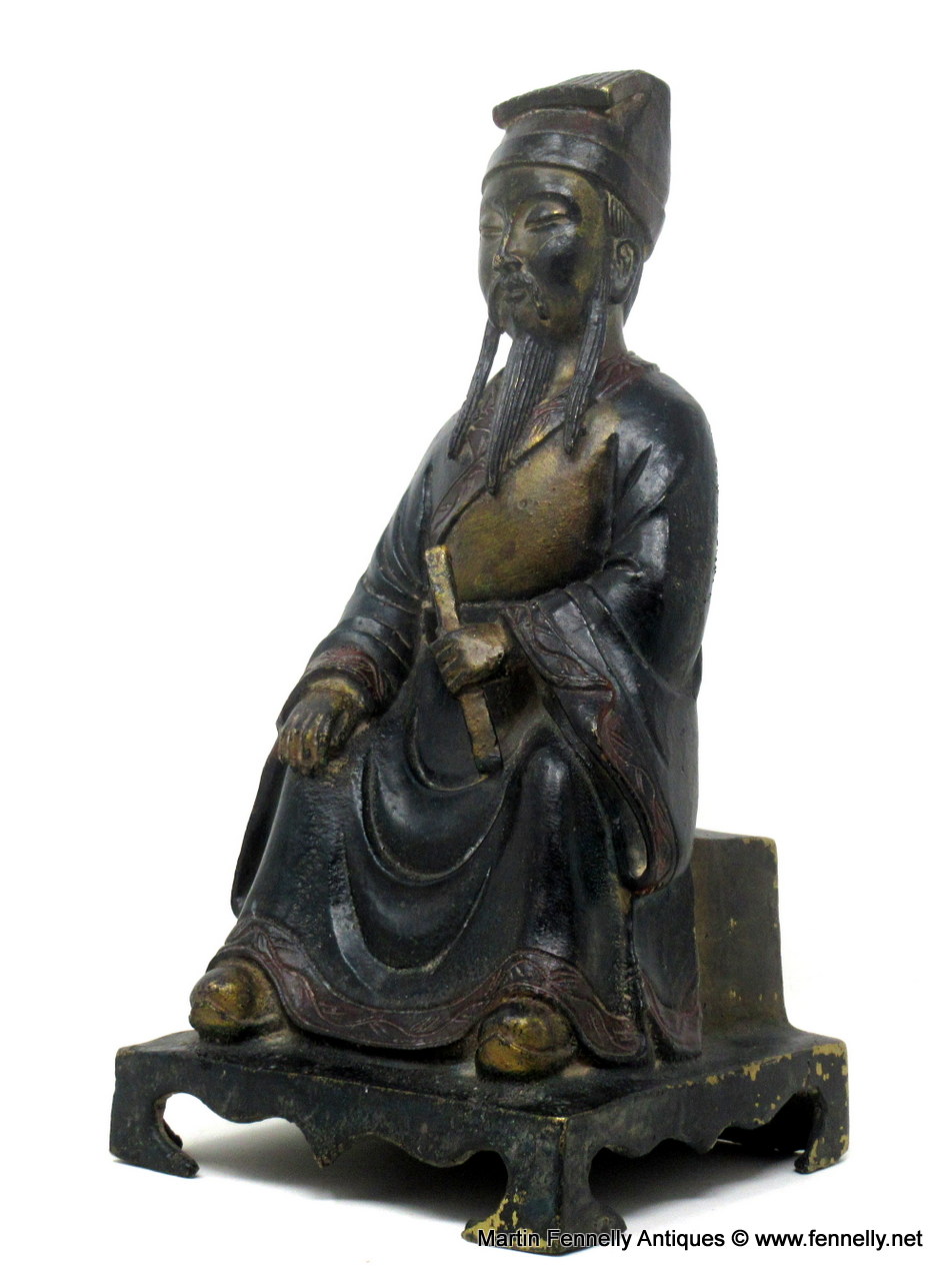 This Chinese Bronze of Wenchang Daoist God of Literature and Culture dates to Circa 1890 and has a stunning Patina. The finely detailed voluminous robe and the fluttering sashes flanking his feet are superbly done. Wenchang Wang is one of the most important deities in the Daoist canon.