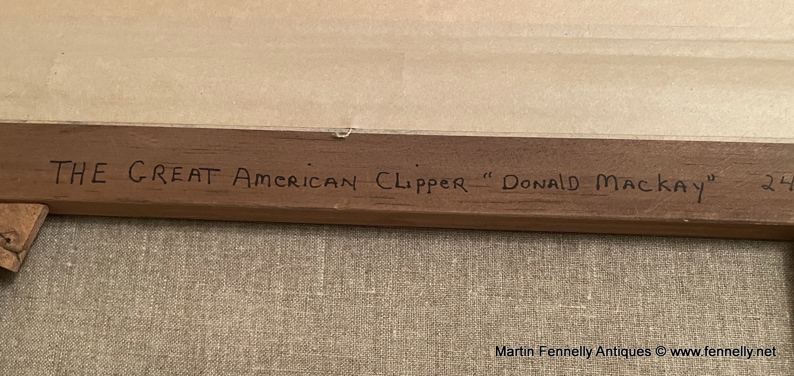 It is inscribed on the stretcher with the title and ship information. It is signed lower right "Henry Scott". It is Framed and in excellent condition.Donald MacKay (September 4, 1810 – September 20, 1880) was a Canadian-born American designer and builder of sailing ships, famed for his record-setting clippers.