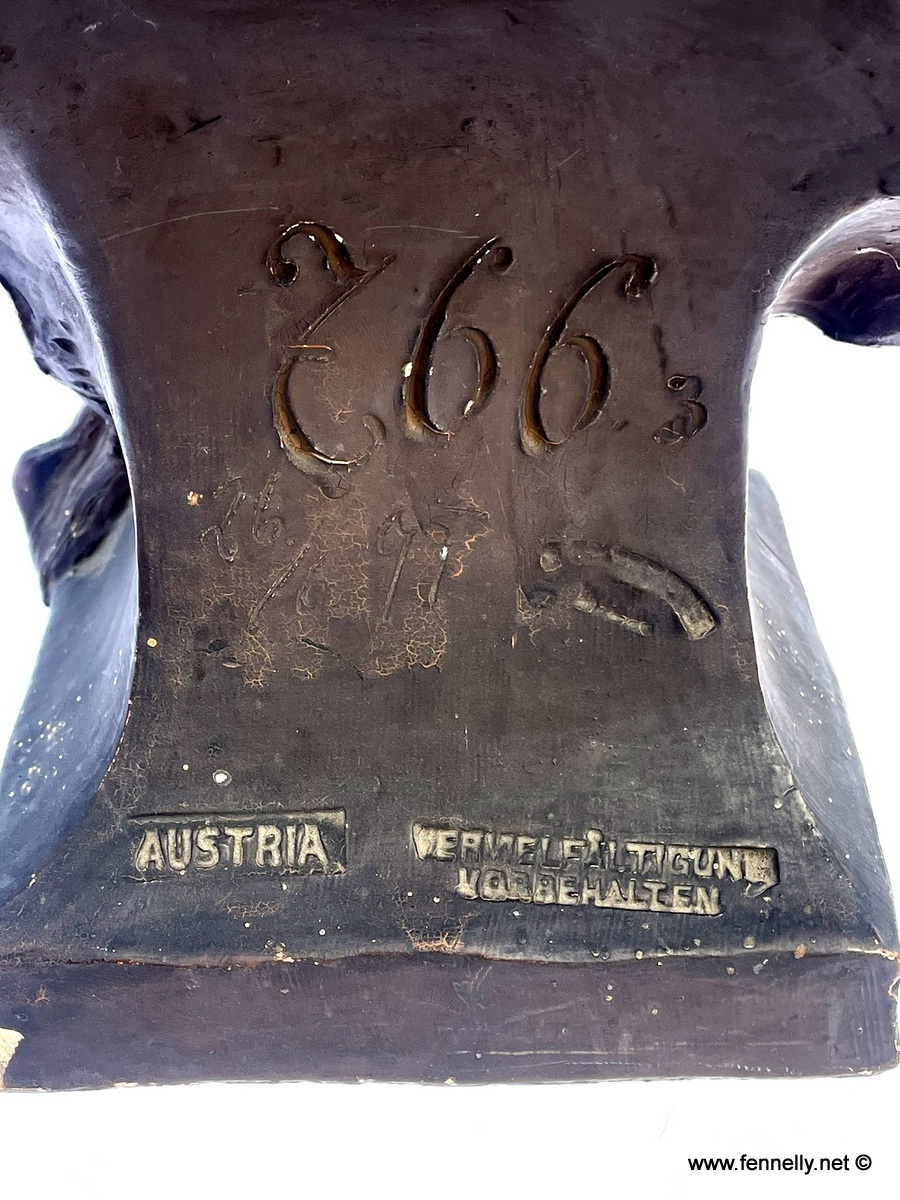 This rather handsome young man was sculpted by Frederick Goldscheider (1845-1897, Austrian). This Male Nubian Bust dates to the late 19th century and has a few light marks as it is ceramic. The rear with an impressed signature, Vienna and numbered. The pose is very elegant and makes for a striking display with an air of control and power which very evident.