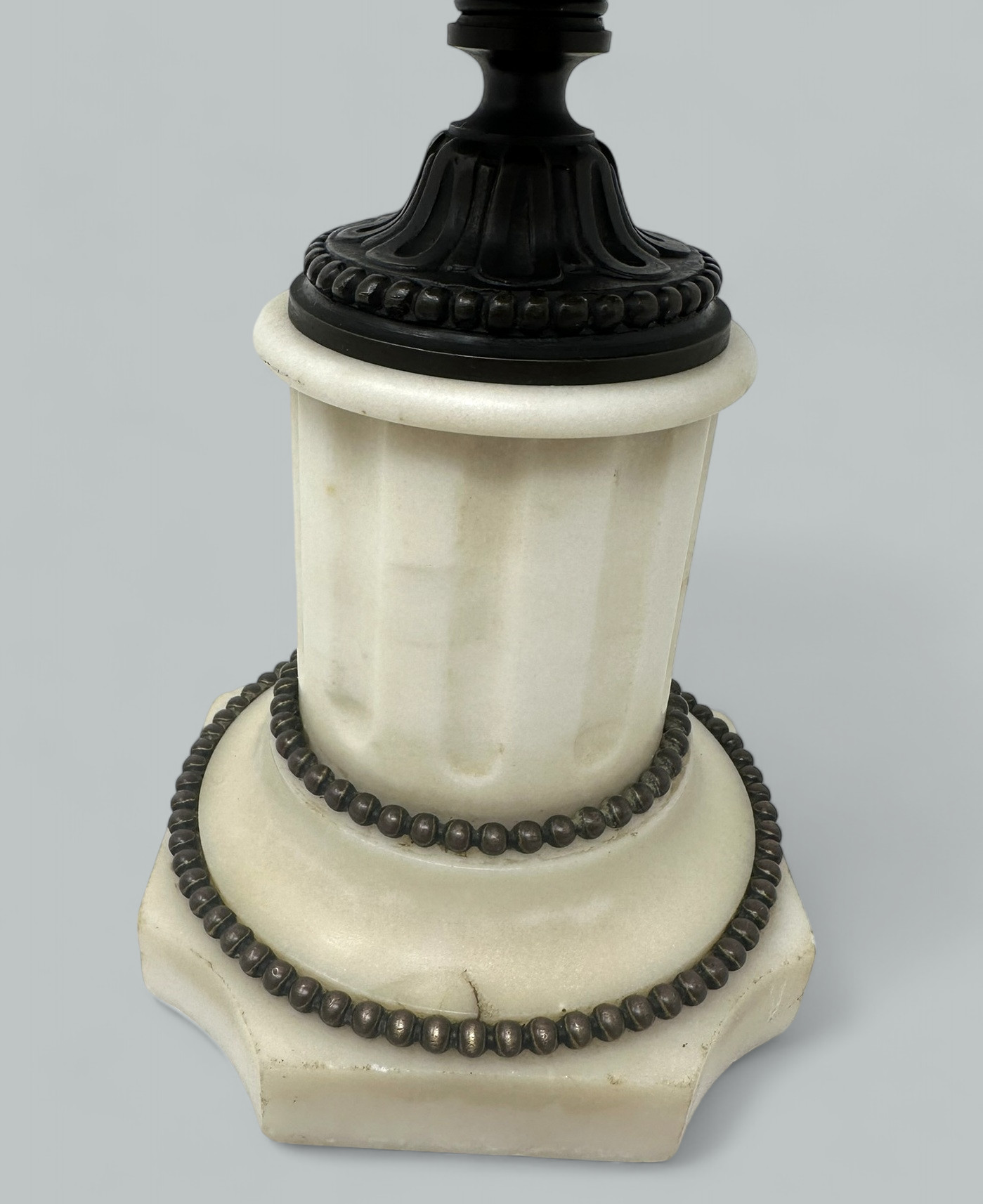 Fine Pair of French Late Empire Patinated Bronze & Well Grained creamy white statutory Marble Grand Tour Twin Handle Tazza of large and heavy proportions