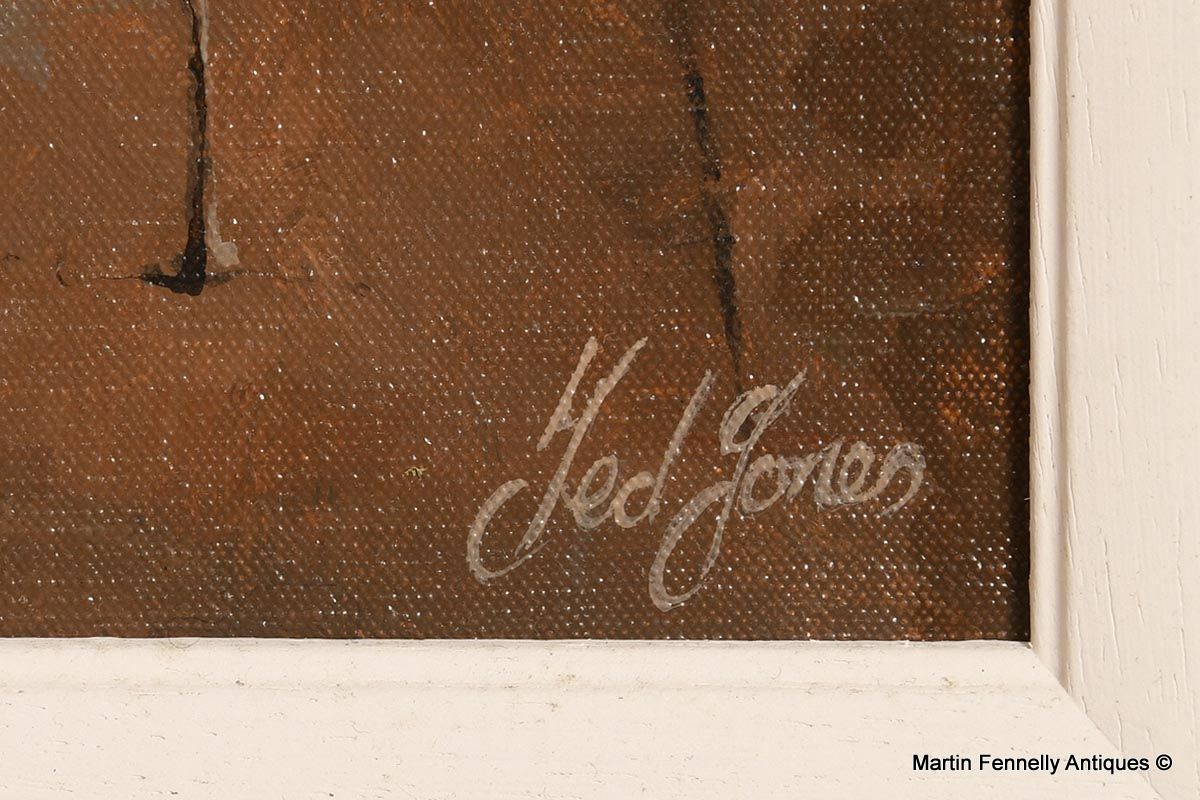 This Painting by Ted Jones (Irish 1952-2017) is a wonderful oil on canvas depicting a Seated Female Nude. Ted Jones is famous for his portraits and this one is a good example of his work. This painting is captivating and exhibits Ted Jones work at its best in the 1990’s. The Painting is framed, signed lower right.