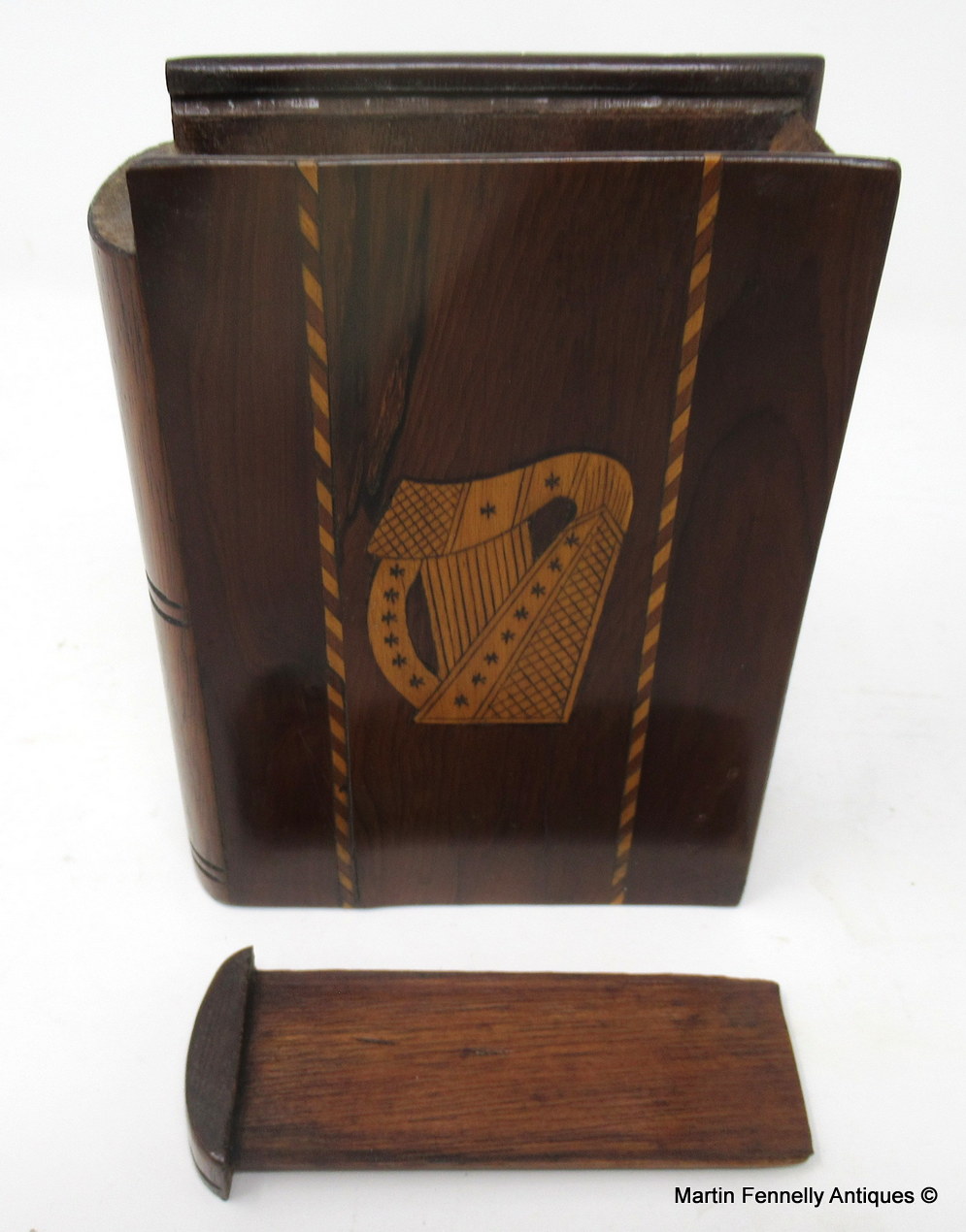 Superb Irish Killarney Ware Arbutus Wood Ladies or Gentleman’s Casket or Table Box of outstanding quality, modelled as a hard back book with a sliding cover to top area.