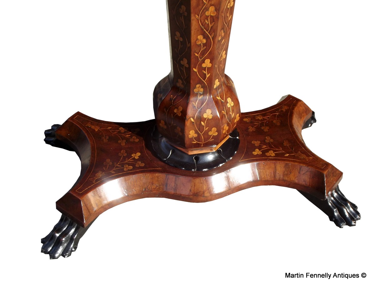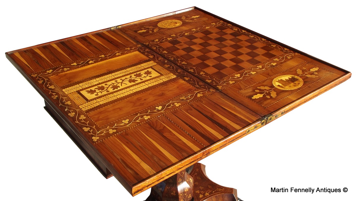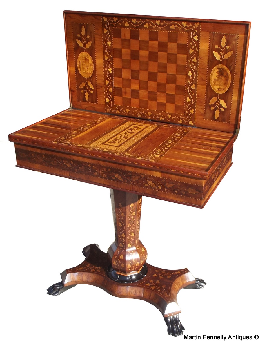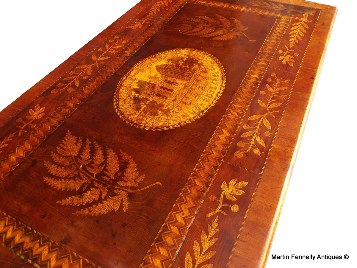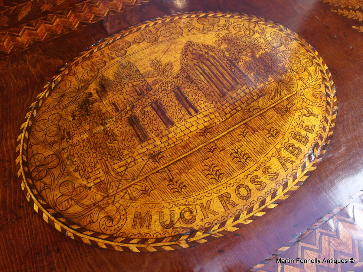 Killarneyware Table Circa 1870 – Museum Quality This piece of Irish History is truly Stunning and in some expert opinions, the best Killarney Games Table currently for Sale. It was made in Co Kerry Ireland in the late 19th Century. It is constructed from Arbutus and Yew Wood and has the full spectrum of Iish Imagery. The Table is in full original condition and was recently Cleaned and Waxed by our restoration experts. When it comes to a beautiful piece of Irish Furniture and also an investment item these pieces of Killarney are perfect, especially when they are as detailed as this one. There is super detail on this piece and this puts this Table way above some plainer pieces that you may find.