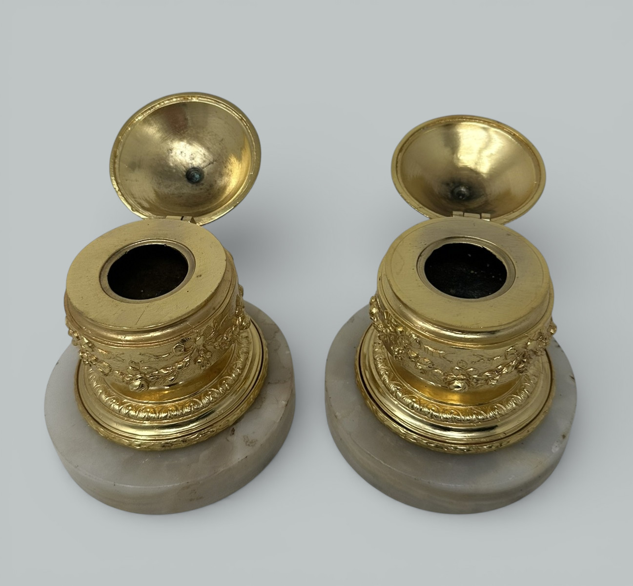 Condition: These Urns have been professionally re-gold plated, no losses to alabaster bases.