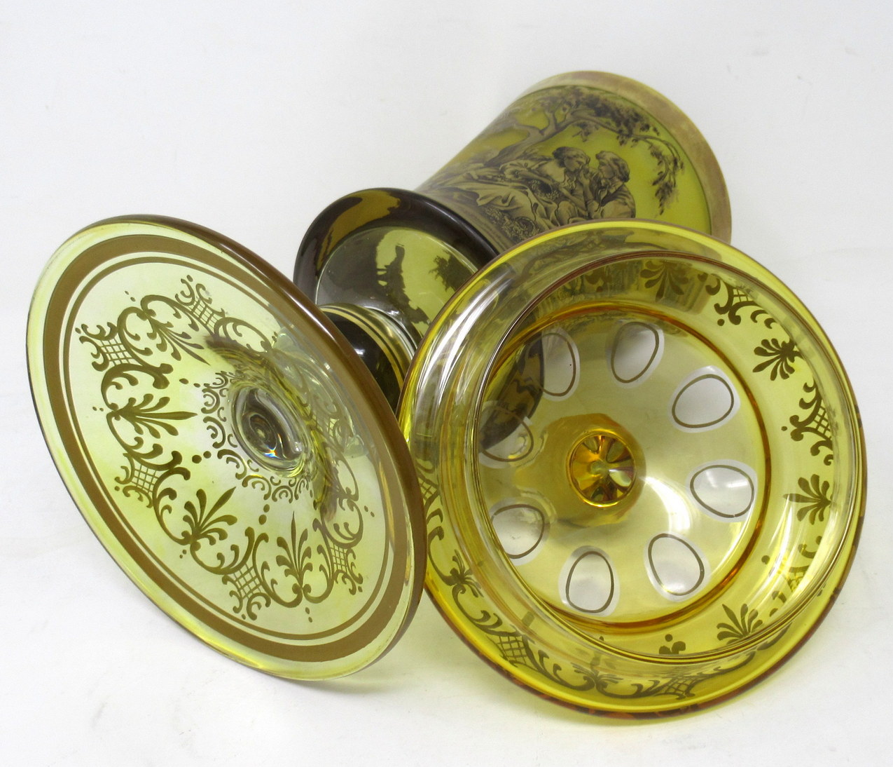 Hand Painted Bohemian Amber-Stained Lidded Goblet of impressive proportions, complete with original firm fitting cover, late Nineteenth Century.