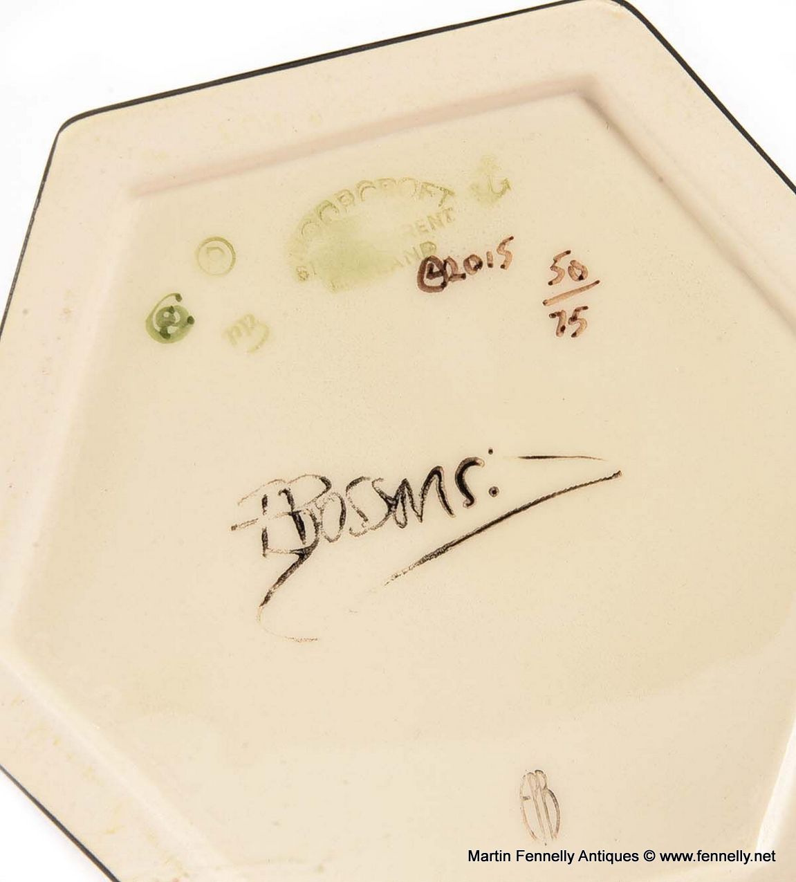This Rare Moorcroft Vase was designed by Emma Bossons ‘Honeycells’ 50/75. It is lovely size and in great condition with original box. Only 75 were made. A mass of wax cells built by busy bees. This piece for part of Emma’s 20th anniversary collection and makes for a striking view with vivid colours and very realistic bees and honey cells.