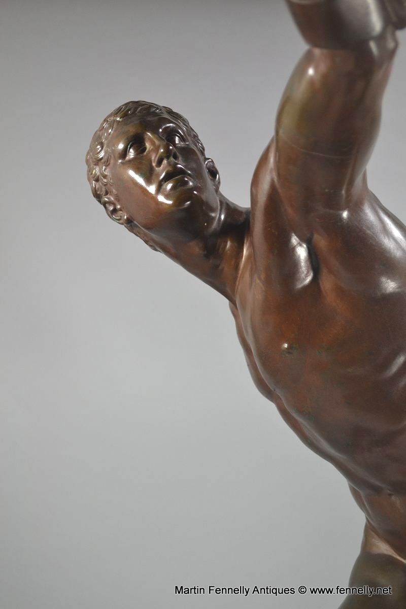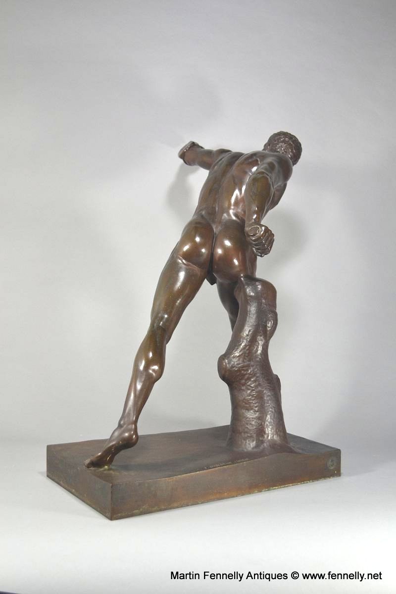 The original Borghese Gladiator is a Hellenistic life-size marble sculpture portraying a swordsman, created at Ephesus about 100 BC, now on display at the Louvre. Foundry – Ferdinand Barbedienne, (1810-92) is mostly known for his bronze foundry, which he owned with Achille Collas in 1839 who had invented a method for mechanical size reduction of larger sculptures.