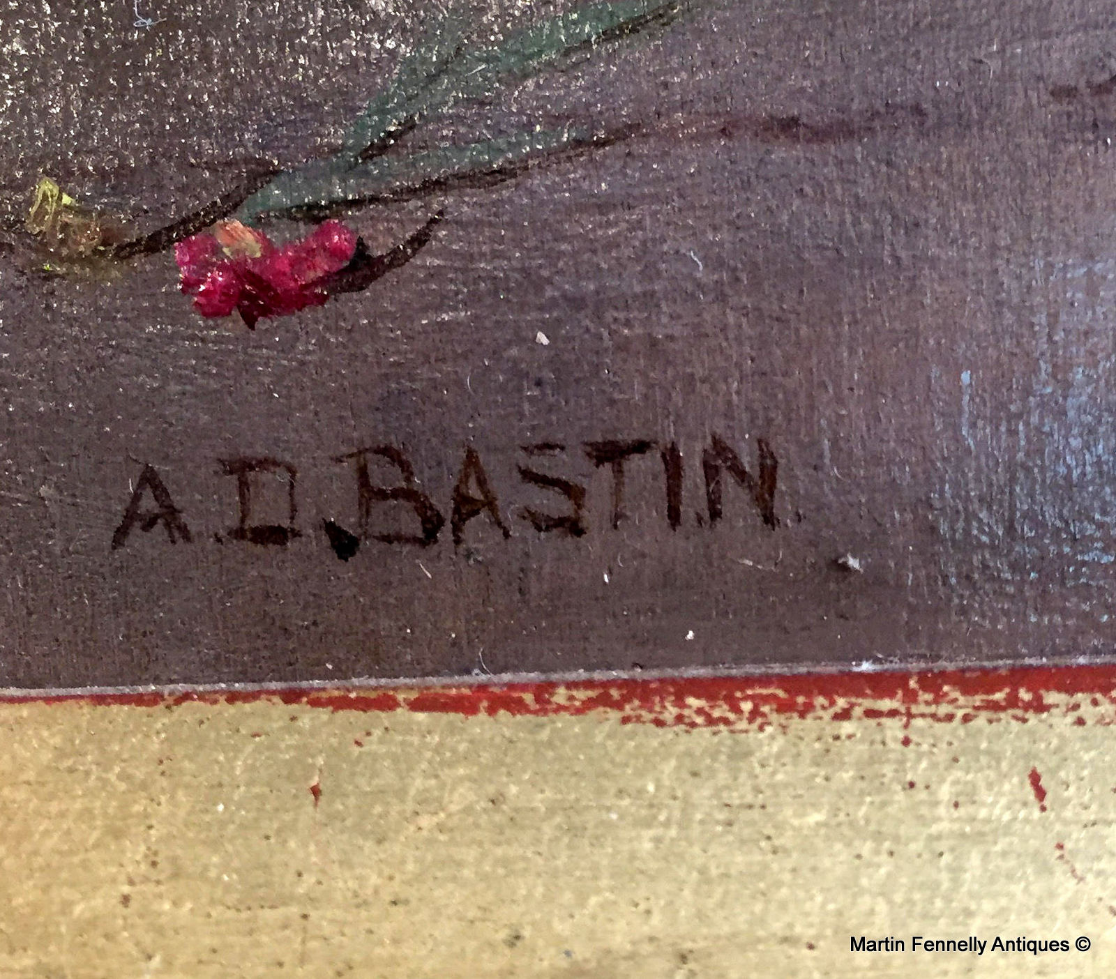 This is a delightful Painting by Alfred Dickman Bastin (1849-1913) English. This Oil on Board ‘A Mischievous Kitten’ is typical of Bastin’s domestic genre and is in the original frame. Alfred Bastin was born in the St Pancras area of London, moved to Manchester in 1879 and relocated back South to Egham, Surrey in 1891. He exhibited at The Royal Academy and other prestigious galleries from 1871 to 1907. The Condition is good and the painting makes for a charming view in my gallery.