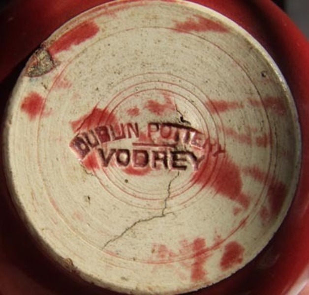 A Very Rare Irish Pottery Vase by Frederick Vodrey Dublin.Beginning in 1872 Frederick Vodrey set up and operated Vodrey Pottery in Dublin Vodrian Ware first came to wide public notice at the 1882 Dublin Exhibition where it earned a merit award. The Exhibition has been launched with the specific intent of drawing attention to and nurturing Ireland’s "home industries and manufactures" Vodrey capitalized on this interest by advertising that he only used Irish clays.Vodrian pieces were simple in form and were particularly praised for their rich highly pigmented glazes such as this piece. The pottery’s striking red glaze won admiring comparisons to traditional Chinese oxblood glaze.