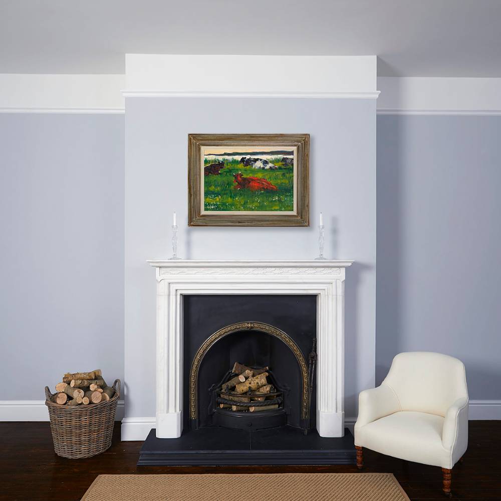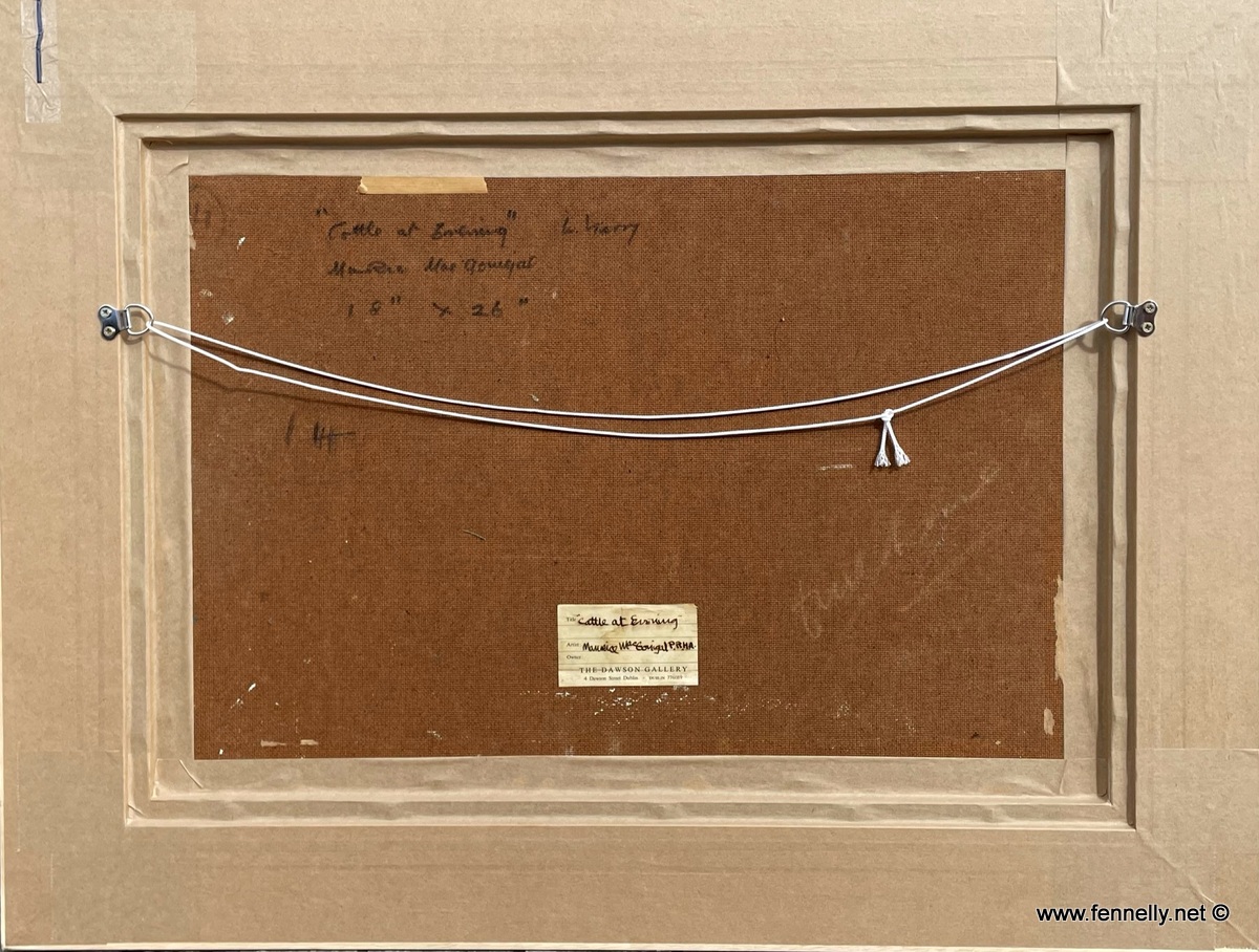 This Painting by Maurice MacGonigal (1900-1979) is a superb Painting ‘Cattle at Evening Co Kerry’ Oil on Panel. This is a large painting by MacGonigal and is a serene depiction of country life in Kerry. The Painting is framed and signed lower left. The Painting has the old Dawson Gallery Label on the reverse and it has comme to me from a private collection. I was delighted to get this painting as there are not many MacGonigal Paintings available. The colours are vibrant and the condition is excellent.