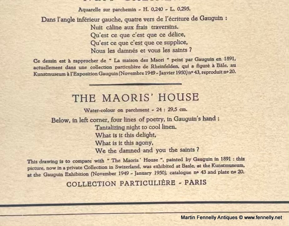 This old Sordam (embossed lower right) was produced in 1951 and was never taken from the covering supplied from Sordam who were approved by the French authorities to produce very high quality reproductions of Gauguin and others. The original painting by Gauguin was painted in 1891. This one was in a collection I purchased from the United States and there were 7 in total from famous Artists of this period so I will be listing more. I am planning on having them framed so the price is for unframed but including the original printed covering. (Framed will be about 100 Euro more)