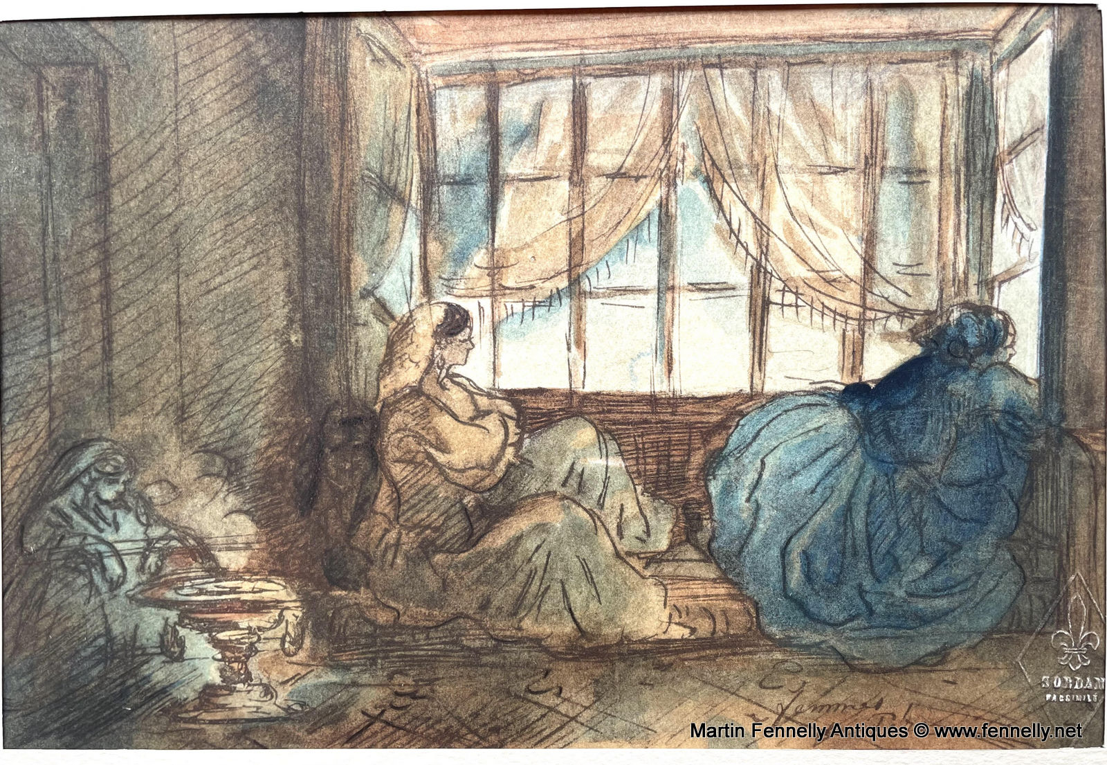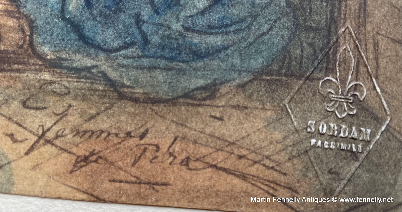 This old Sordam (embossed lower right) was produced in 1951 and was never taken from the covering supplied from Sordam who were approved by the French authorities to produce very high quality reproductions of Constantin Guys and others. Femmes de Pera by Guys is one of a collection I purchased from the United States and there were 7 in total from famous Artists of this period so I will be listing more. I am planning on having them framed so the price is for unframed but including the original printed covering. (Framed will be about 100 Euro more)