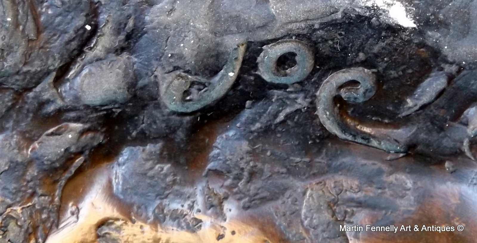 Dynamic English bronze casting of a Polo Player and Pony . The energy of the piece is Superb with the player swinging his stick just about to hit the ball with the horse at a mild cantor.The Detail of the movement is spectacular and the Sculptor would appear to really be on top of understanding the Equine physique reflected in the incredible Muscle detail. There is a Signature ‘joe’ but I cannot find information on this Artist. This piece is quite large and heavy so Shipping to the USA would be expensive (Circa 500 Euro)