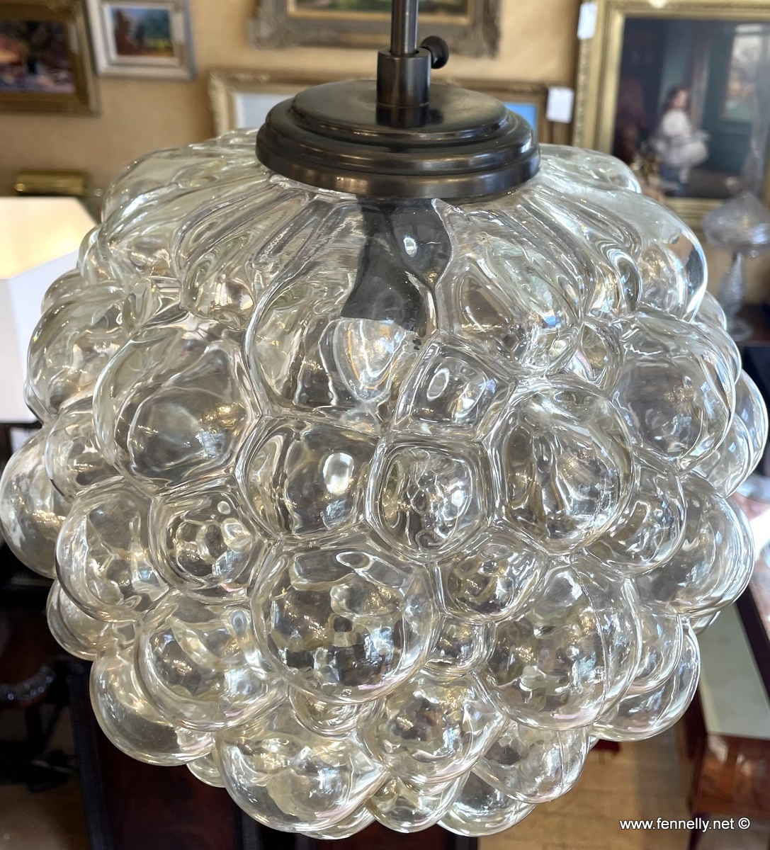 This is a lovely ‘Bubble Lantern’ by Helena Tynell. It dates to the 1970’s and is in great condition with bronze chain and wired. This iconic lantern will bring some mid century magic to any interior space.