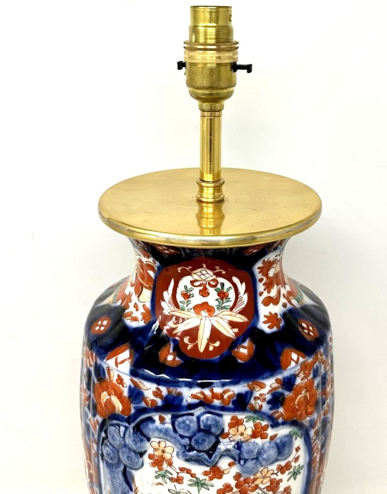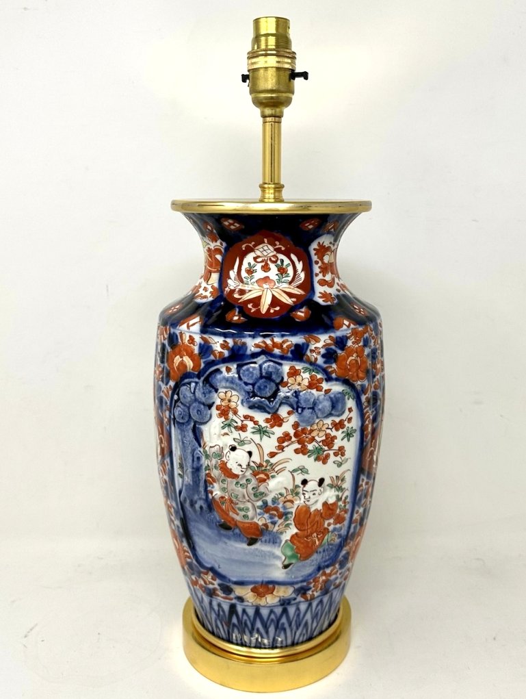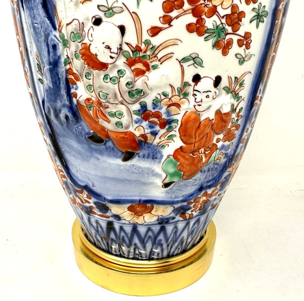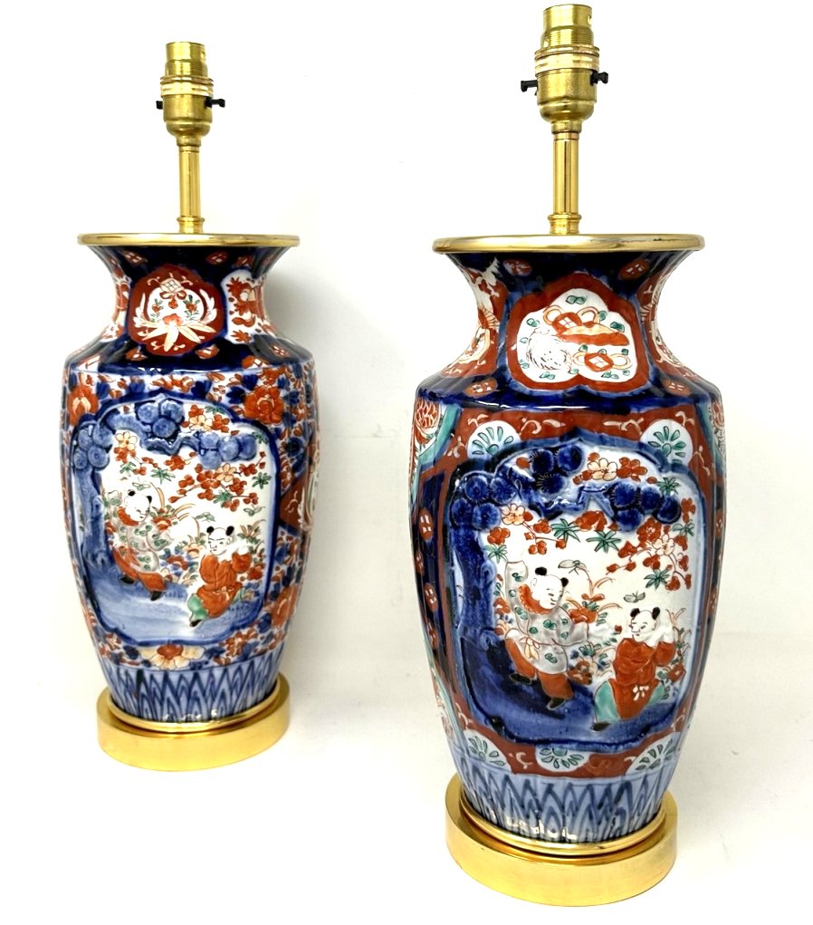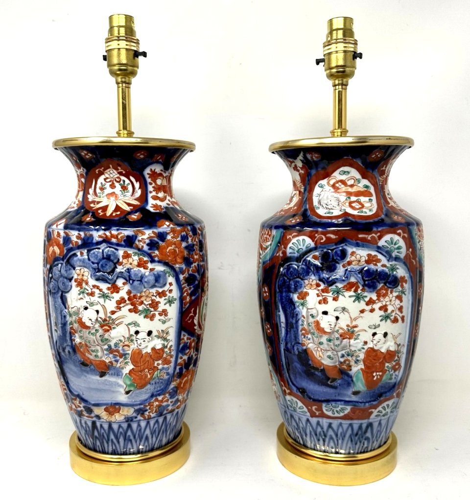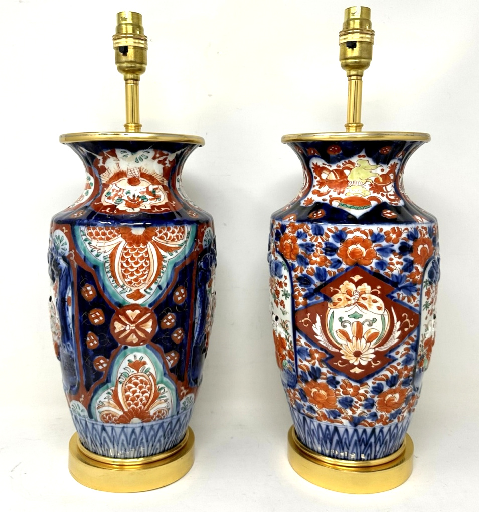 Stunning Pair Traditional Japanese Imari Bulbous Form Porcelain Vases of medium to large proportions, now converted to a pair of electric Table Lamps, complete with ormolu stepped circular bases and later ormolu mounts. Second half of the Nineteenth Century.