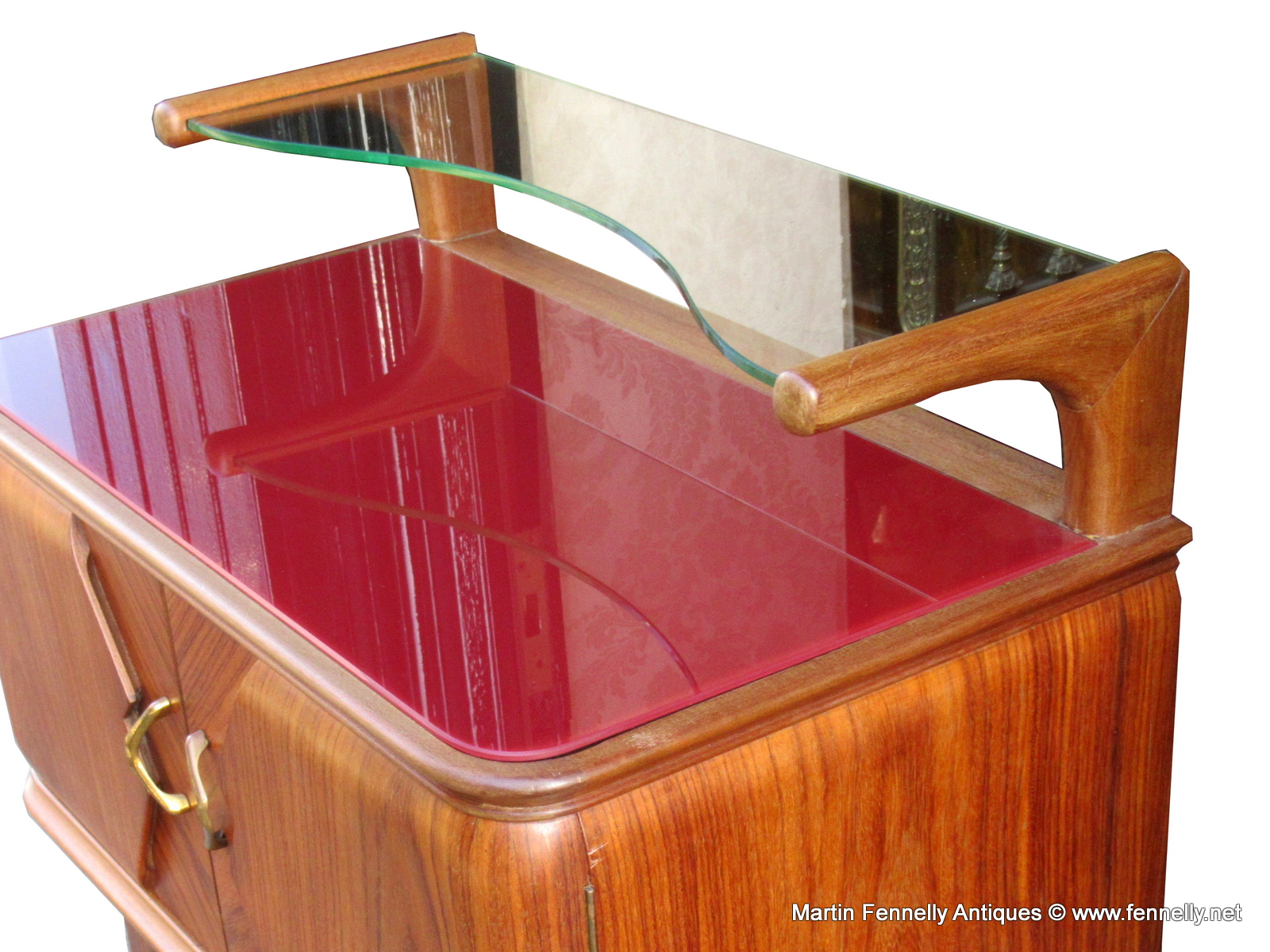 These are a superb Pair of Rosewood, Glass Top and Floating shelf Italian Cabinets. The elegant design is so typical of the mid century period and they are beautifully constructed. The splayed legs are wonderfully turned and support a twin door cabinet, glass top and floating shelf which is all in good condition.