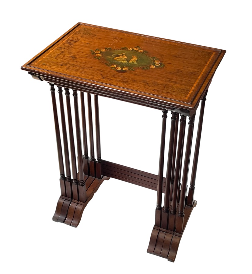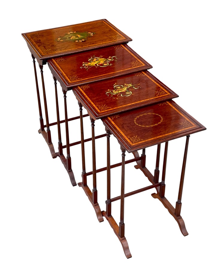 821 Antique Edwardian Mahogany Quartetto Set Nest of Four Occasional Tables 1900 – Hand Painted