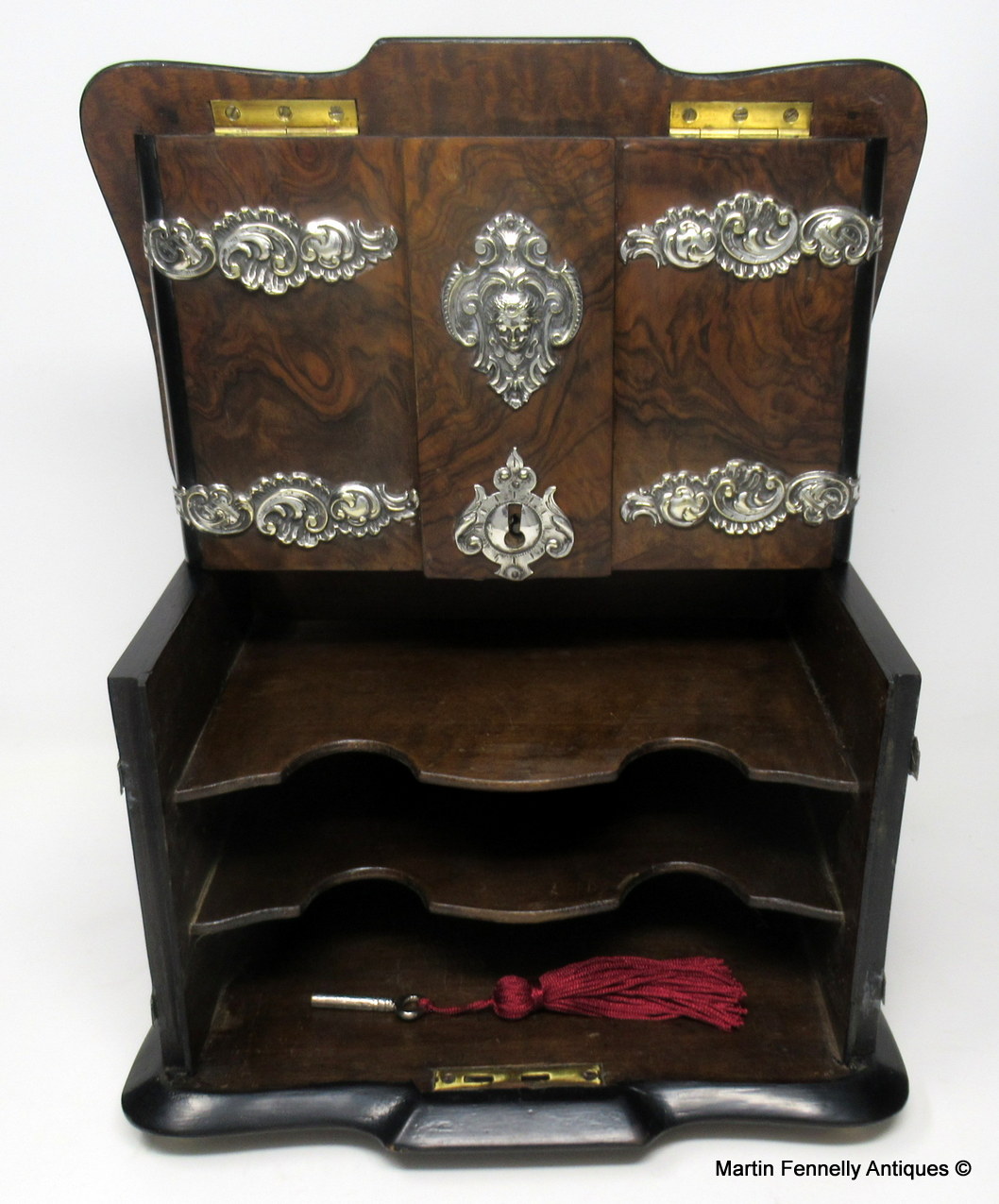 Fine Quality Burr Walnut Lady’s or Gentleman’s Desk or Table Stationery Casket of medium proportions. Last half of the Nineteenth Century.