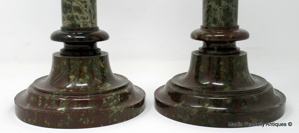 Stunning Pair English Cornish Serpentine Marble Heavy Gauge Single Light Table or Desk Candlesticks of outstanding quality and condition. Mid Nineteenth Century.