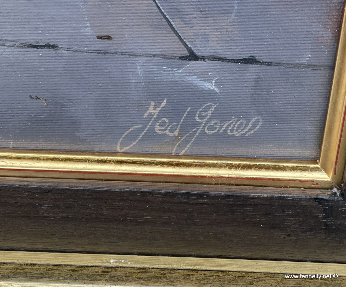This Painting The Busker by Ted Jones (Irish 1952-2017) is a wonderful oil on board. Ted Jones is famous for his depictions of everyday life and he really captures a moment in time here. This painting is captivating and exhibits Ted Jones work at its best in the 1990’s. The Painting is framed, signed lower right. This Painting has an excellent provenance and was purchased directly from the Artist in the early 1990’s which many believe was when Ted Jones produced his very best paintings.