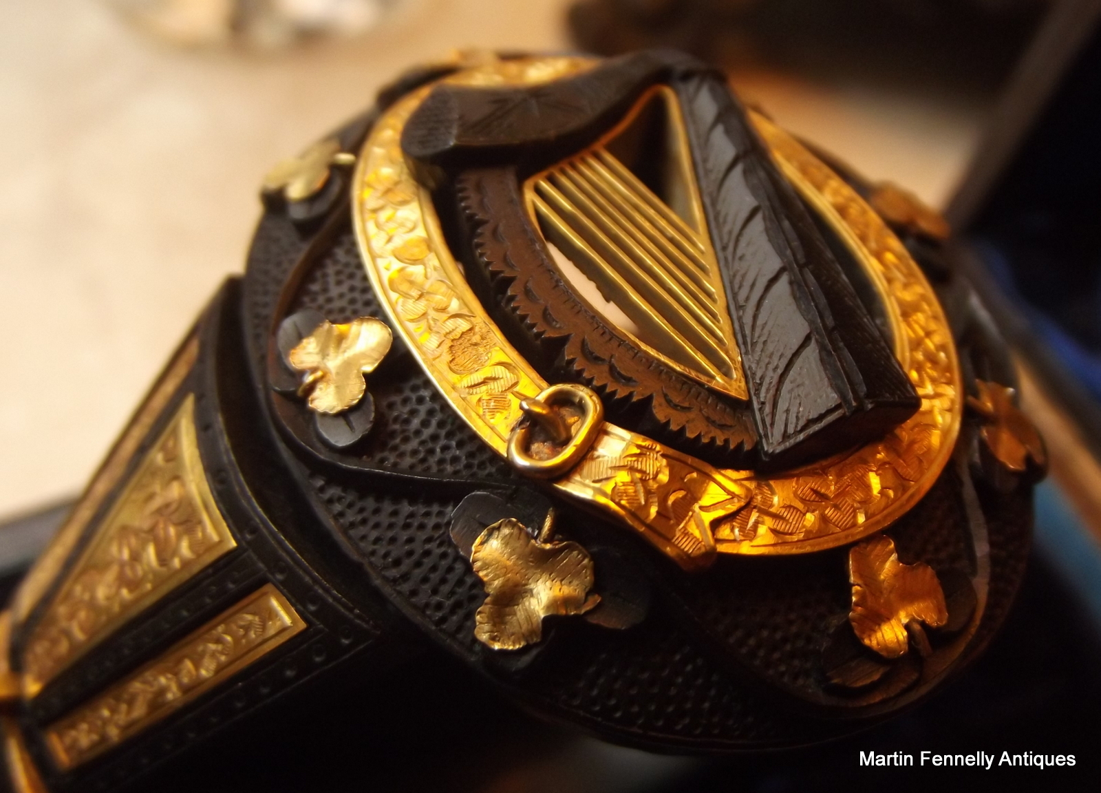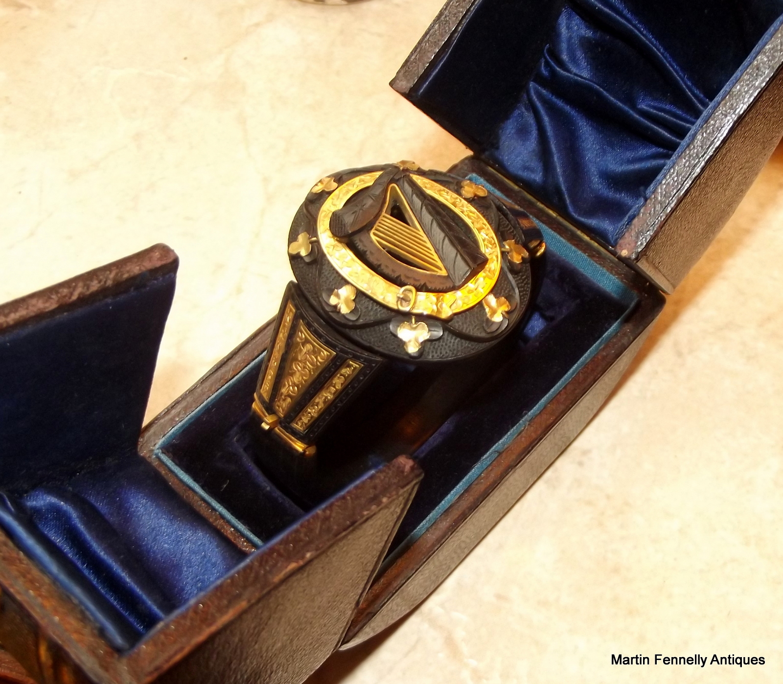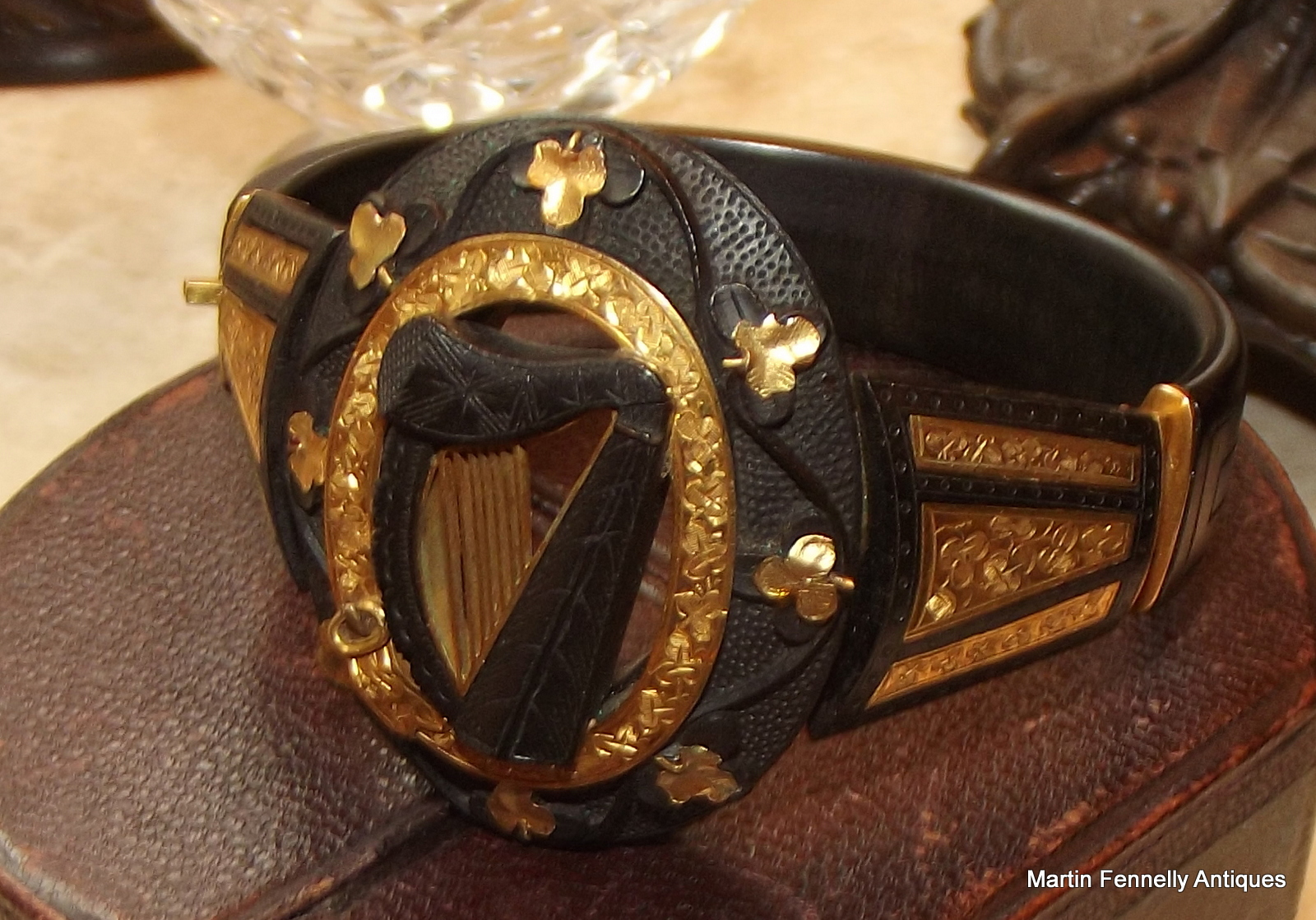 Irish Bog Oak – This Rare and Wonderful piece of Irish History is the most amazing and Beautiful Item i ever had in my Store. This Bracelet in original box is in Superb Condition and the detailed Carving and 18ct Gold is of standard that would suggest one of the top Makers of Bog Oak and this piece was most likely commissioned for an Aristocrat based in Northern Ireland during the Late Victorian Time. Thanks for Viewing
