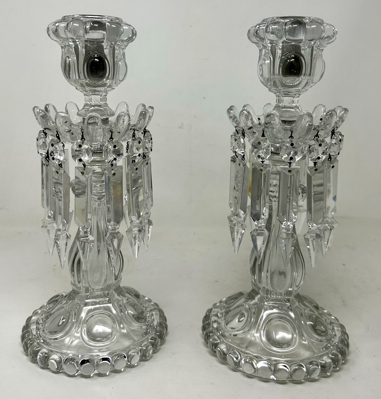 Fine Example of a French Baccarat Pair of Regency Style Neoclassical Single Light Full Lead Hand Cut Candlesticks Lustres of generous proportions with stylish bulbous columns above dome shaped circular spreading bases with decorative edges.