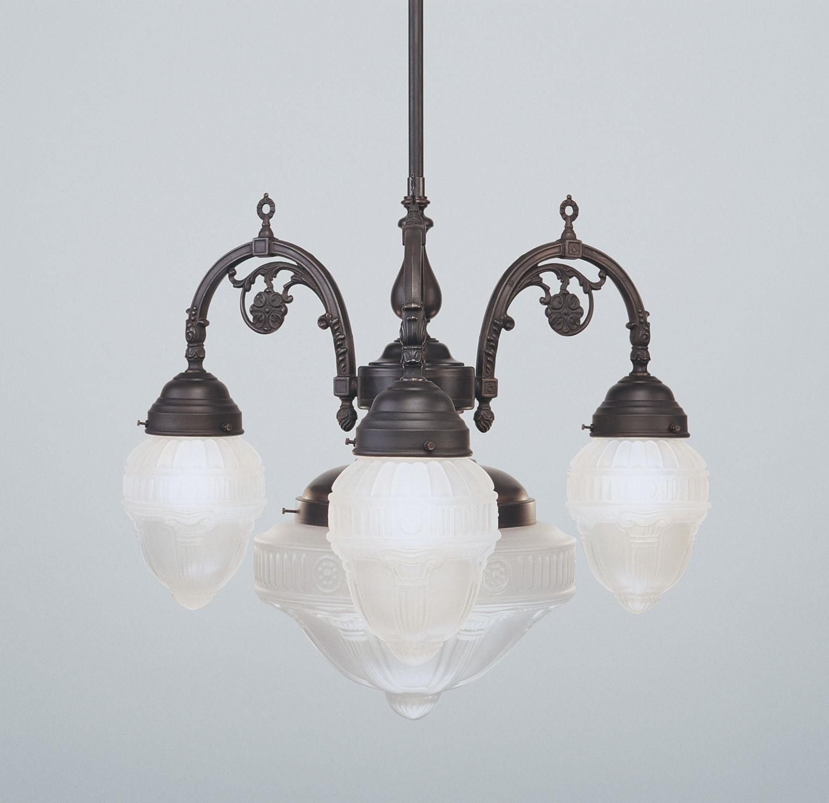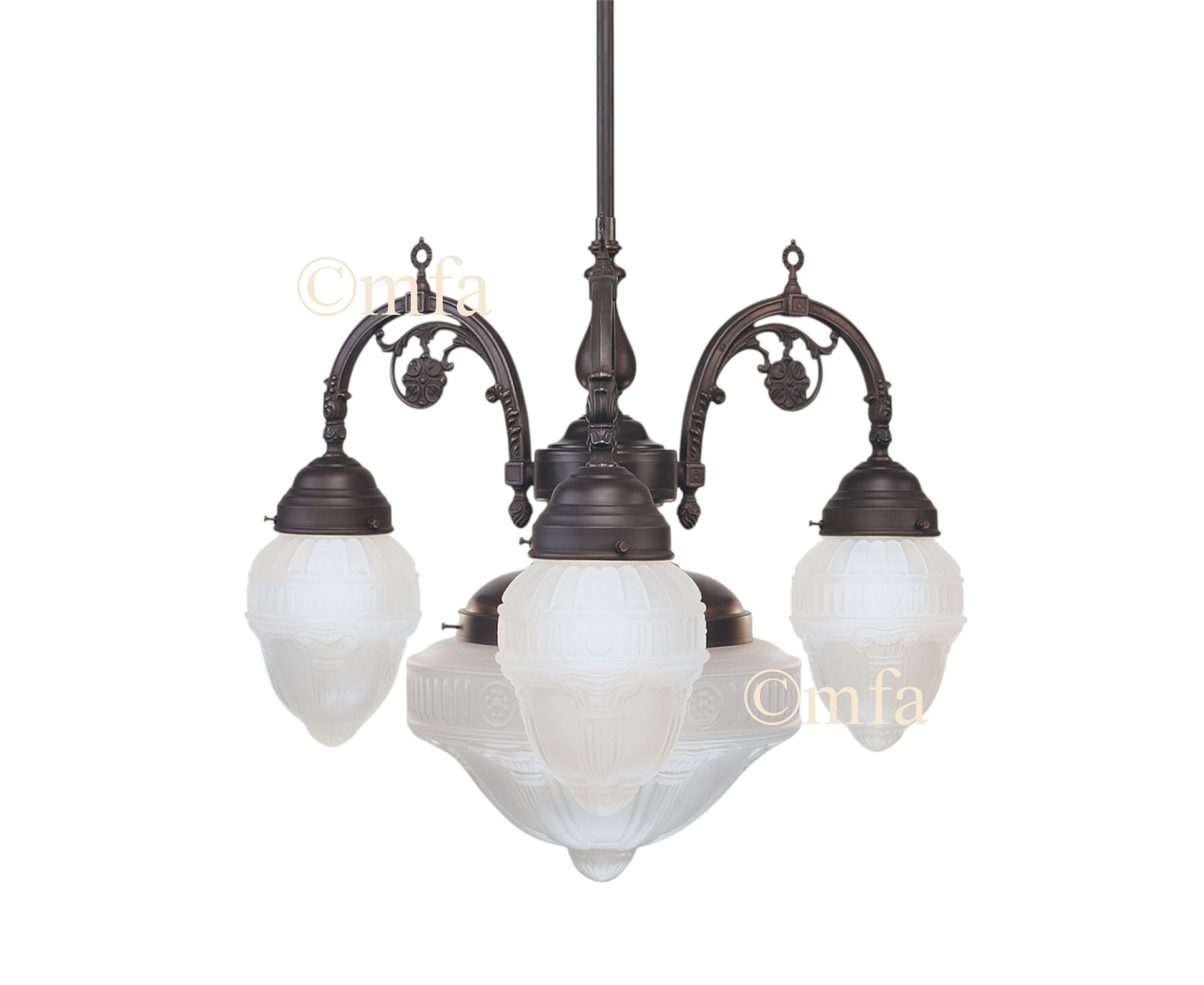 This beautiful Chandelier is from Germany and makes for a lovely Art Nouveau vibe in your interior space. This Berlin Chandelier has 3 outside drop lights and one central large light. It comes with a fixed rod so please note the dimensions to ensure it will suit your height limitations in your room. The light comes complete with Ceiling Cup and modern wiring.