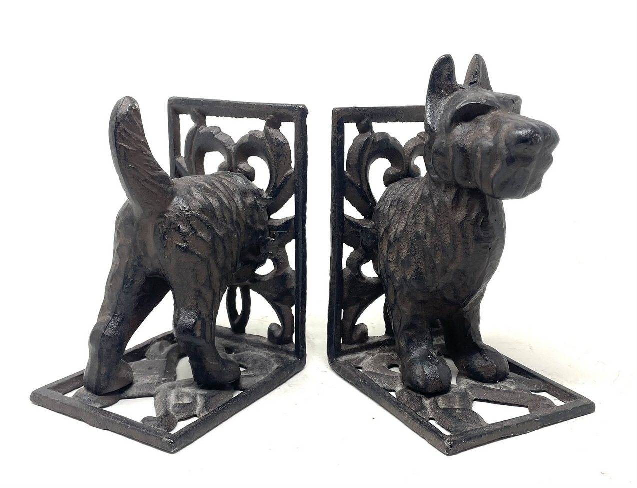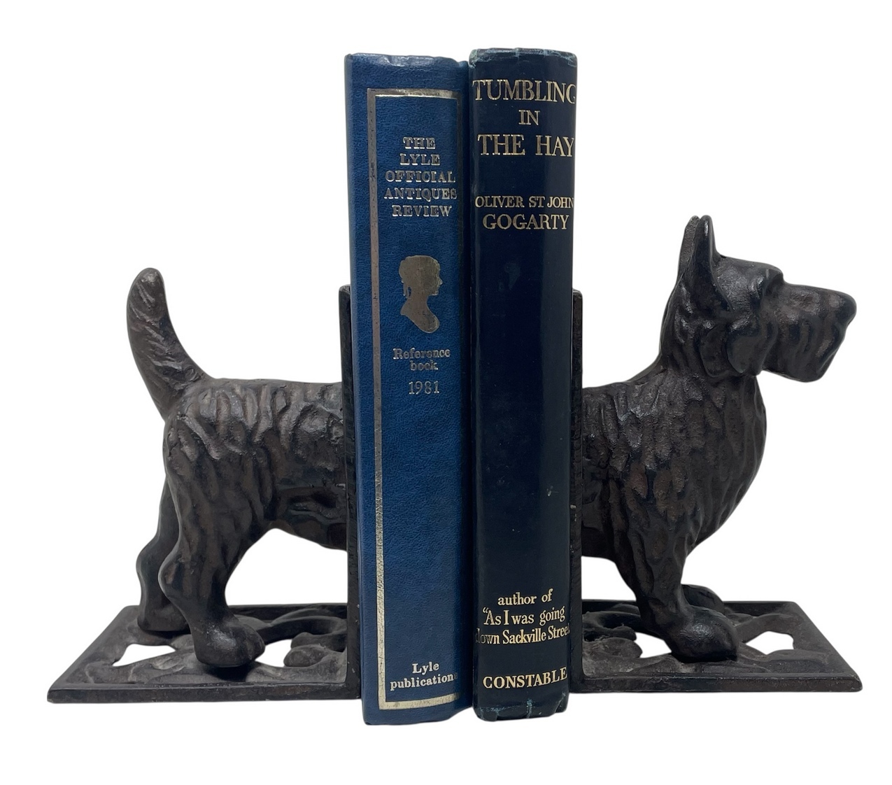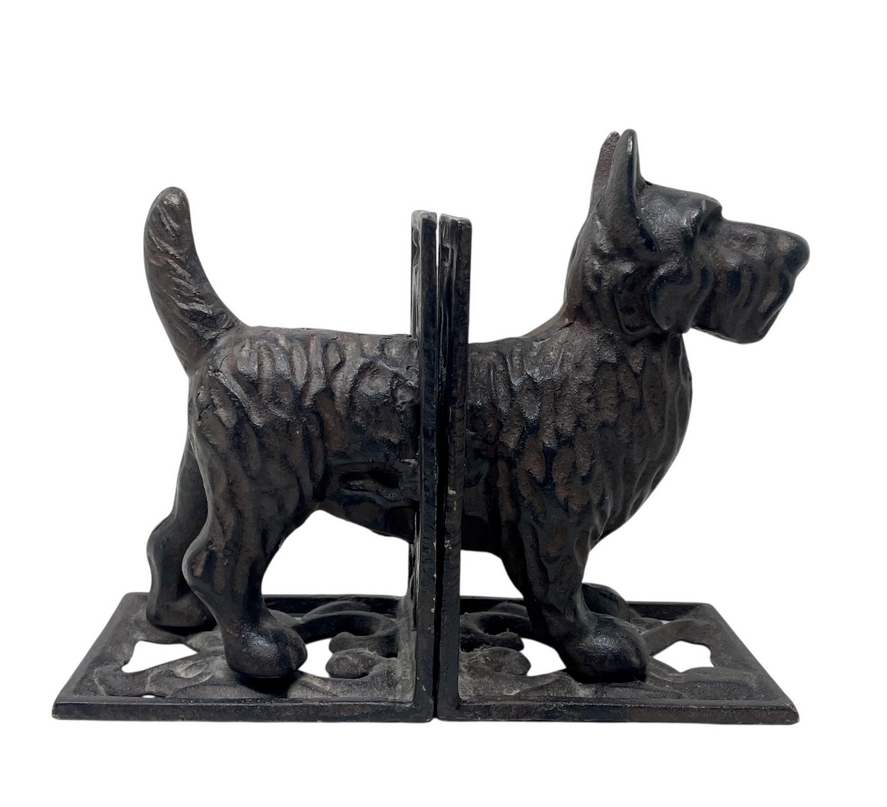 These are a cute set of Bookends – Scottie Themed – The famous Whiskey Dogs. The Perfect Gift for the Whiskey Fan in your life. Circa 1890.