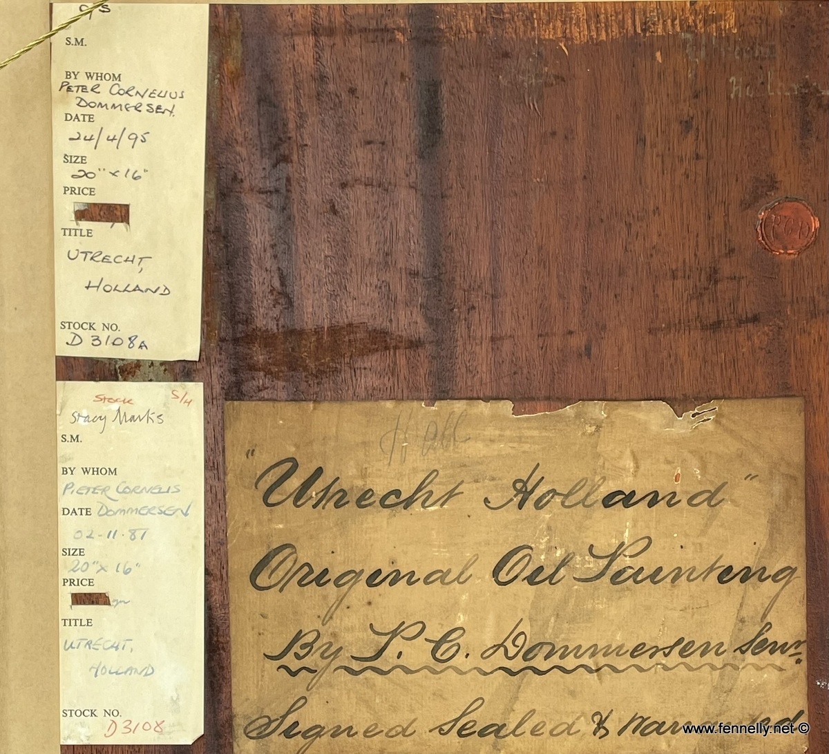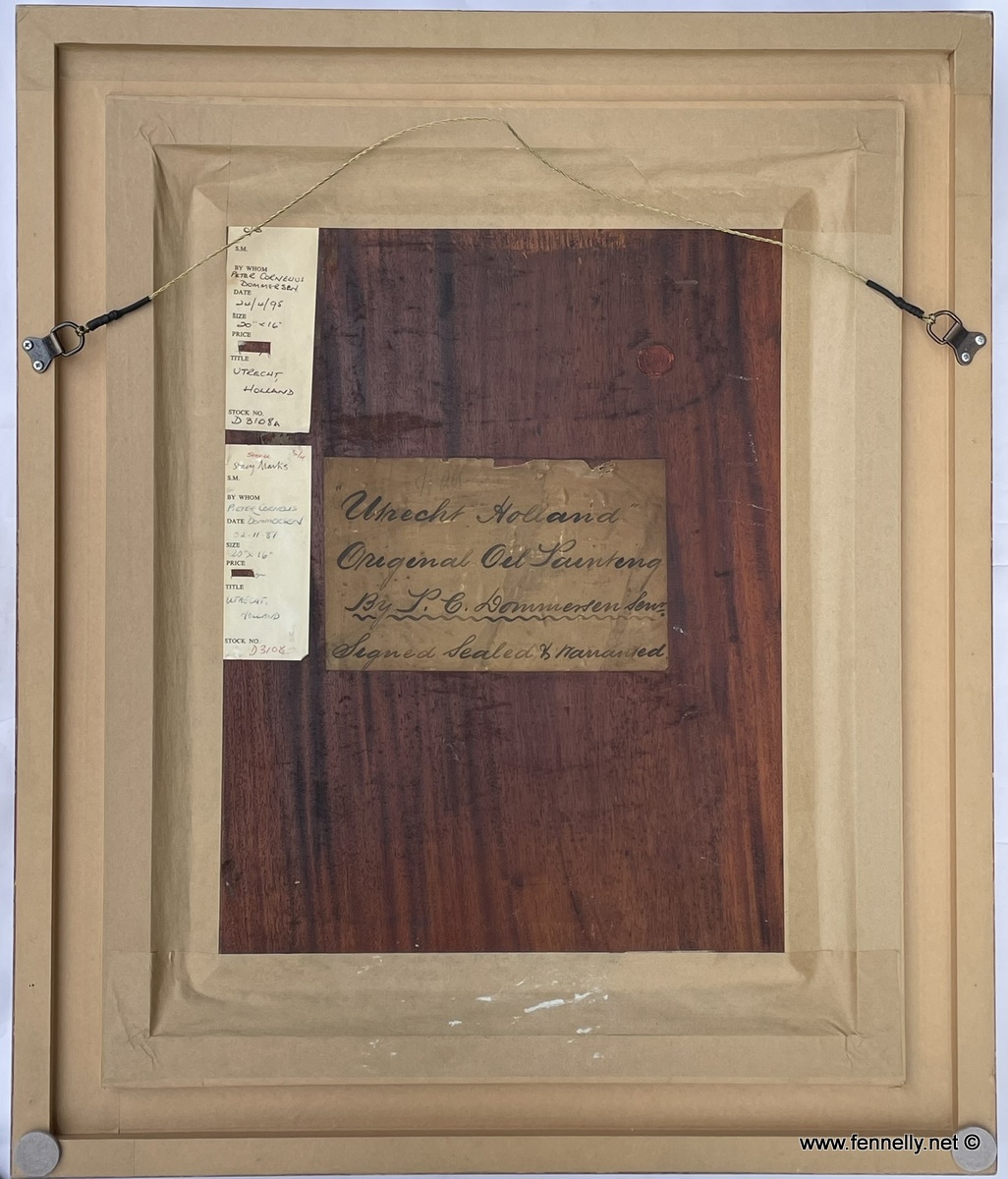 This is a beautiful Painting of Utrecht Holland by Dutch Artist Pieter Cornelis Dommersen, Signed lower left and dated 1892. Pieter was a member of the famed Dommersen family of Amsterdam painters, Pieter Cornelis specialised in painting Street and Harbour scenes. Having worked in Holland and Brussels, he moved to England in 1860, and there painted quintessentially Dutch scenes for the British market, such as the present work. He signed his works which were painted in England P.C. Dommersen. In England, he exhibited at the Royal Academy, the Royal Society of British Artists, and the British Institution amongst others, and, although much acclaimed during his lifetime it wasn’t until the 1960s when his talents were fully recognised. Painting bears the Artist Seal to the verso and the original artist note of location. In the original superbly crafted frame.