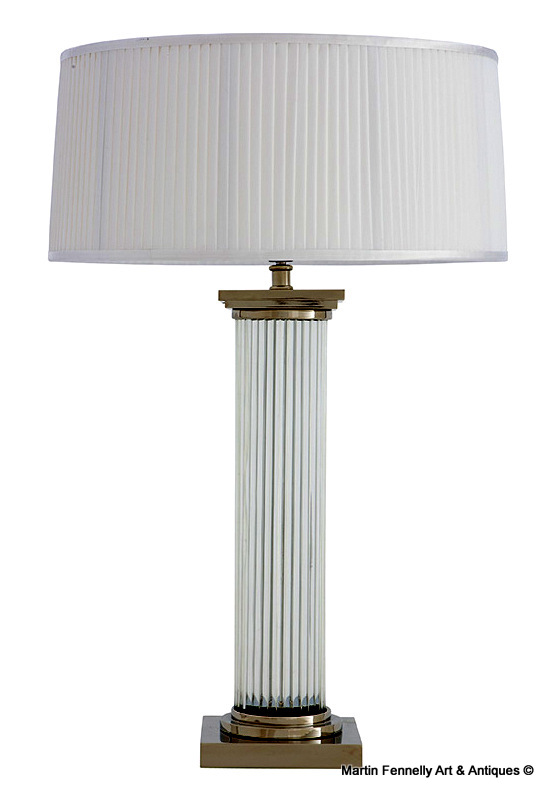 A style to endure changing trends This Pair of Crystal and Nickel Table Lamps with pure white pleated shades and elegant crystal stands are timeless and chic.Inspired by the Doric column forms of ancient Greece, the transparent base includes traditional fluting and is finished with a glossy metal capital and base.The design’s noble structure and interesting shade proportions make it fabulously graceful whilst giving it an inimitable modern gravitas.
